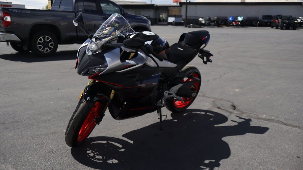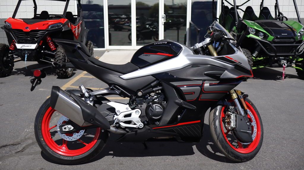 2026 CFMoto 450SS BUILT TO OUTCLASS ITS CLASS. If someone tells you price equals performance, hand them the keys to this. The 449cc parallel twin with a 270° crank delivers 51 horsepower and plenty of torque where it matters—right in the heart of the rev range. The slipper clutch makes downshifts clean. The Brembo M40 caliper and oversized rotor gives you braking that borders on overkill. The suspension? Tuned for pavement with personality—rippled, cracked, and full of stories. A 5" TFT dash connects via Bluetooth®, supports RideSync®, and gets smarter with every over-the-air update. Complete with ABS, traction control, and reverse shift capability, now you see why this machine blows past everything in its class. Features may include: 449cc Parallel Twin Engine with 270° Crank – 51 Horsepower This engine punches above its weight, with a broad torque curve and a 270° crank that delivers the pulse and character of a V-twin. Power comes on early and stays accessible—ideal for carving up backroads, accelerating out of tight corners, or navigating stop-and-go traffic with control and confidence. It rewards refined inputs and welcomes those still sharpening theirs. Brembo® M40 Front Caliper with Oversized Rotor This isn’t just good braking—it’s premium, track-proven performance. The Brembo® front setup delivers immediate bite, refined modulation, and fade resistance when you need it most. It's more braking power than many bikes in this class offer—because you deserve more. Multi-Link Rear Suspension Whether you’re hitting potholes or leaning into a fast corner, the multi-link suspension keeps the rear planted and progressive. It reads the road and responds with balance, delivering a confident, composed ride on imperfect pavement. Full LED Lighting See more. Be seen sooner. The LED headlight, taillight, and turn signals cut through darkness, glare, and unpredictable weather with sharper intensity and faster response than conventional bulbs. They don’t just sharpen the bike’s design—they enhance your visibility from all angles, helping you ride longer and with more confidence, day or night.?