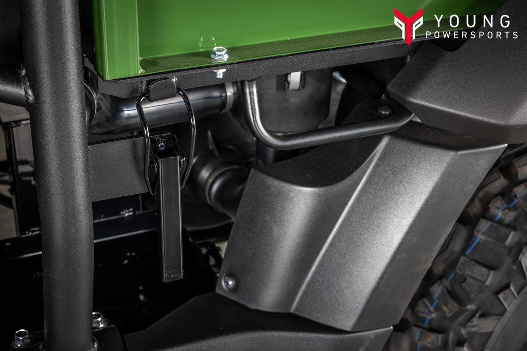 Steel tube ladder-type frame is the sturdy foundation of Kawasaki MULE™ side x sides. Optimized rigidity contributes to traction, stability, and ride comfort while the Roll Over Protective Structure (ROPS) and steel front bumper provide a rugged external structure.