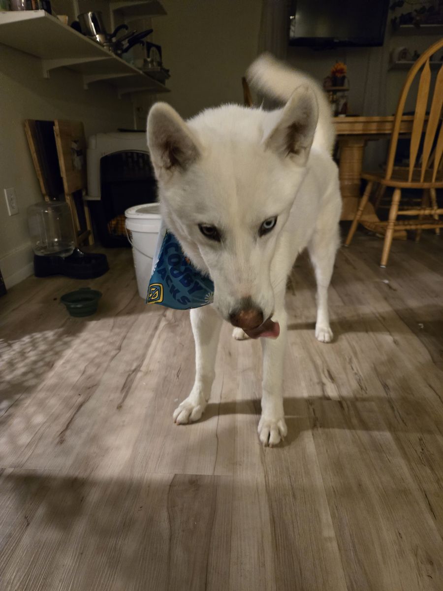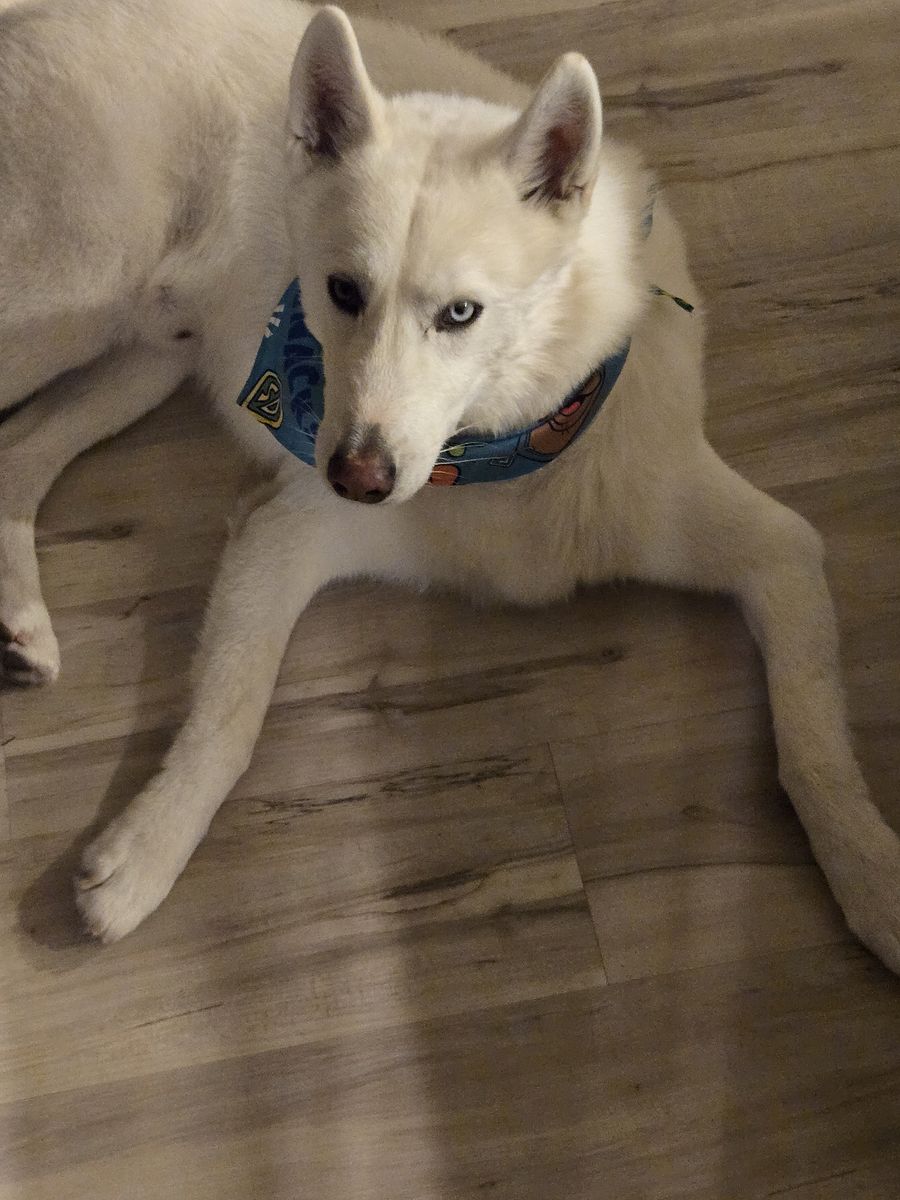 Lupin has been an amazing dog always looking out for his pack(family). Great with kids although he is a little shy at first but he is quite the character. He thinks he is a sled dog sometimes, and he always loves a good scooby snack. He has been with us for over two years, but unfortunately due to unforseen circumstances we have to let him go. He needs a good home where he can run around and play. If you can take care of him and give him a good home then you can have him and that includes a crate, and all his food. Just reach out and we can set up a good time for you to meet him.