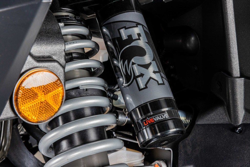 The cutting-edge semi-active suspension utilizes FOX's adaptive Live Valve technology, dynamically adjusting compression damping for each wheel. Enjoy reduced body roll, smoother terrain navigation, and superior resistance to bottoming.