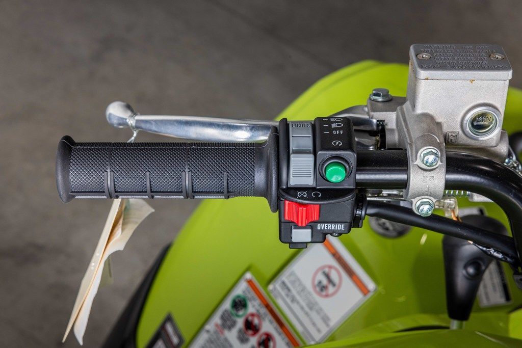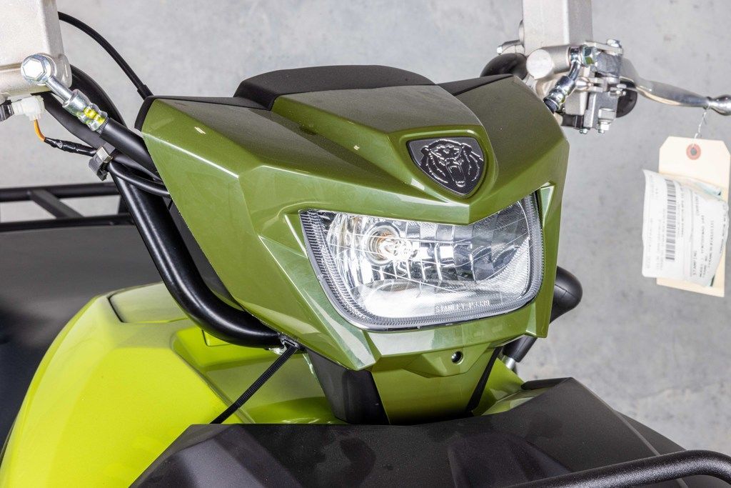 A handlebar-mounted halogen work light provides additional illumination that moves with rider input for excellent visibility.
