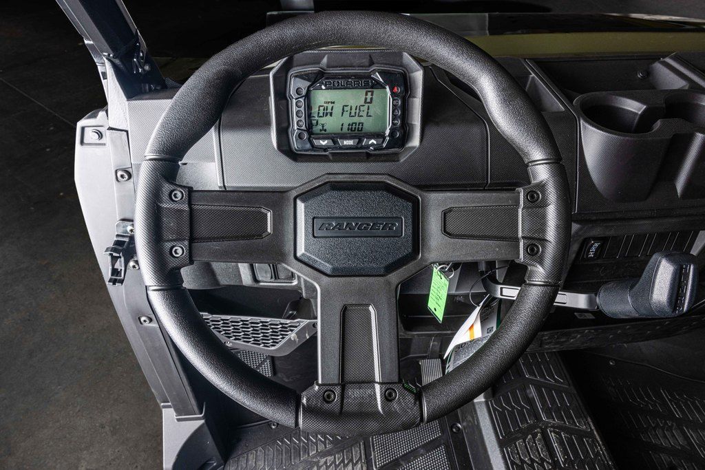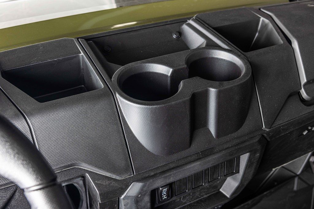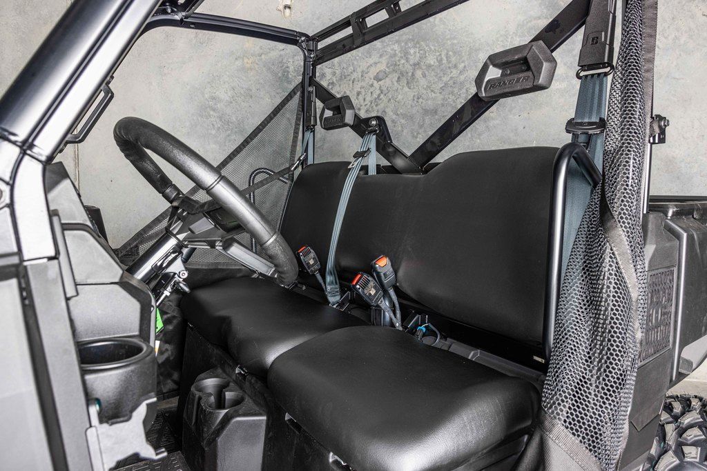 Ride more comfortably from sunup to sundown, thanks to a tilt steering wheel, plush seat cushions, and factory-installed roof (on Premium). Redesigned cab nets offer one handed operation for easier entry and exit.