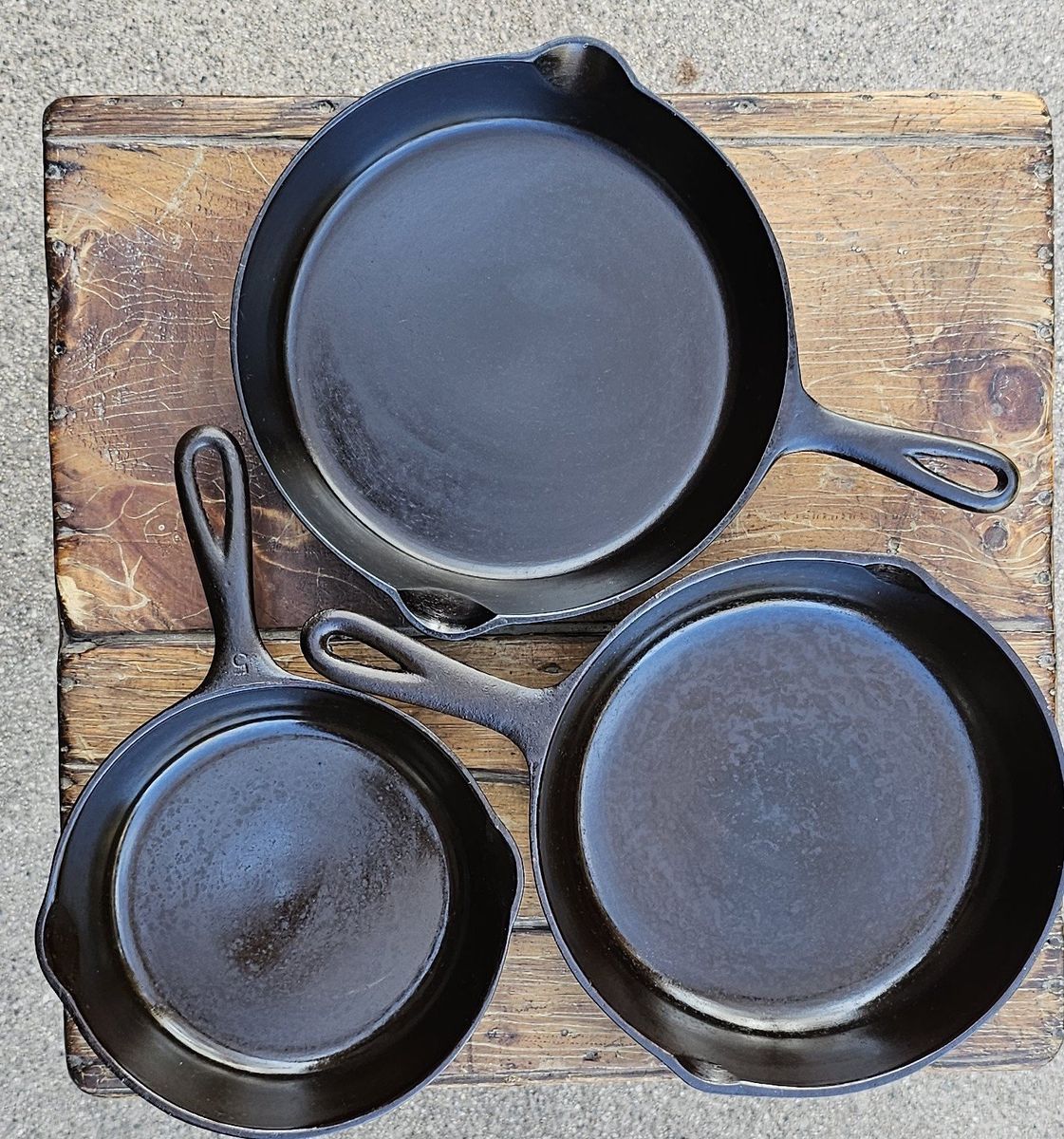 GooglePayI rescue, reclaim and restore cast iron the proper way. Lye bath, Electrolosys then 5 rounds of seasoning with grape seed oil. A lot of love has gone into the restoration process and these pans are smoother, lighter and have better cooking surfaces than anything you can buy new. Some of these pieces have lasted 100 years and they will last a hundred more. The new production is cheap and mass produced and you can tell the difference. Pans that you can find it in the store today have rough, lumpy surfaces. Get something nice. Talk to me. I'm a chef and a restoration specialist. I have single notch Lodge, three notch Lodge, Birmingham Stove and Range AKA BSR. 10", 9.5" and 8".$100 for the lot or $50 $40 $30 individually. The single notch lodge is the most valuable piece at 10 in It's the oldest and finest cooking surface you will ever use. Two of the finest vintage and antique manufacturers. Pick up in Yale Crest, Salt Lake City