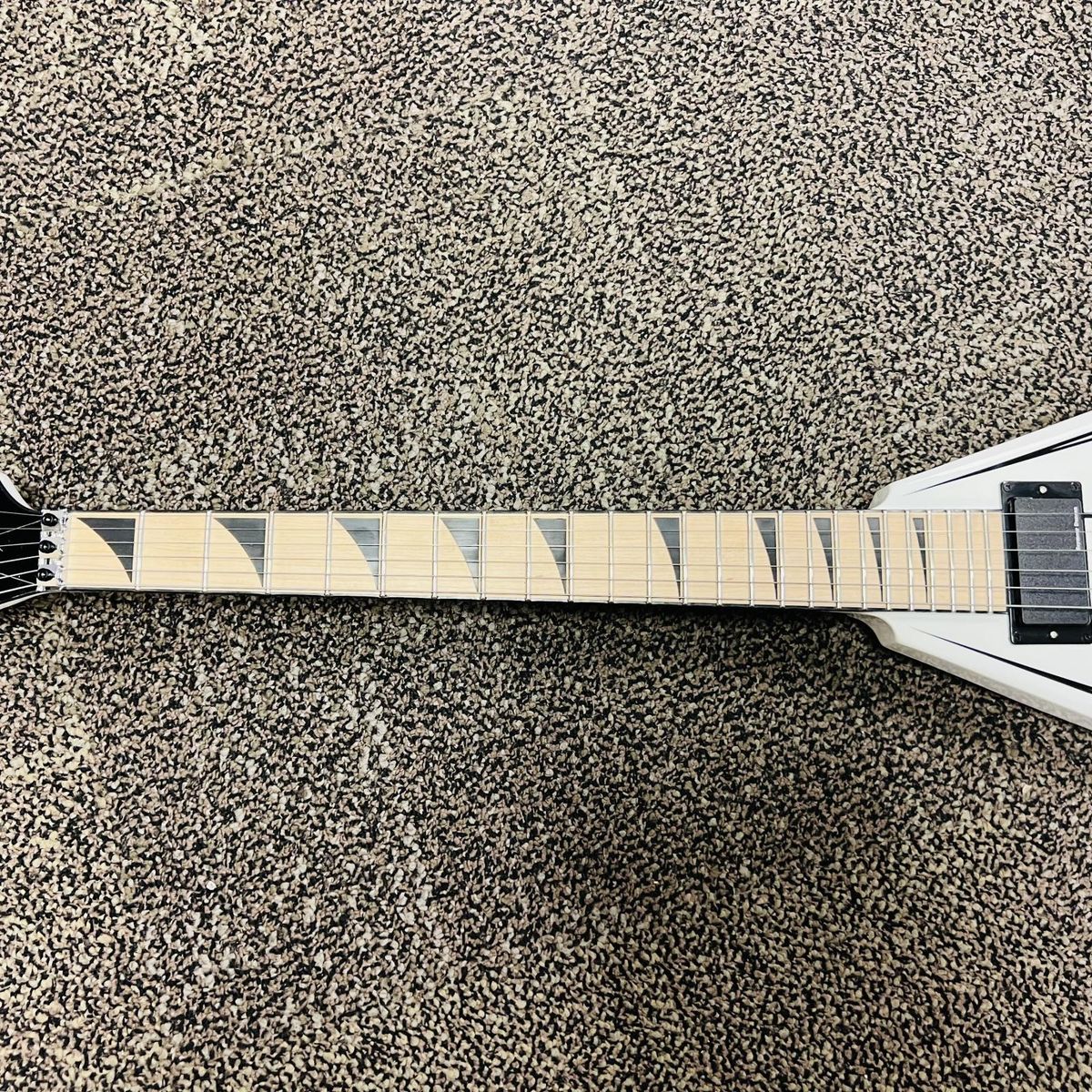 The Jackson X Series Rhoads RRX24M in Snow White with black pinstripes delivers aggressive style and high-performance playability for modern rock and metal players. Featuring a poplar body and a through-body maple neck, this guitar provides strong sustain and stability.