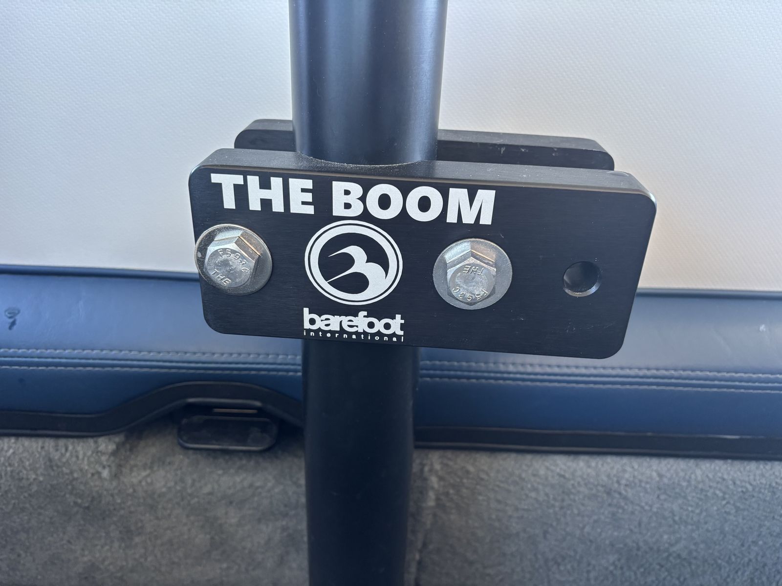 VenmoUsed Barefoot International Deluxe Universal Contour Boom, Model B202. Boom has a 2 1/2' clamp that mounts below the boom taper. Contour bend pushes the boom back 8” from where the pylon sits so it will fit boats where the window extends past the pylon or there is a tower mount in the way. Boom is in great condition. Clamp and pin were purchased new in 2025. I'll demonstrate the boom in action - serious buyers only.