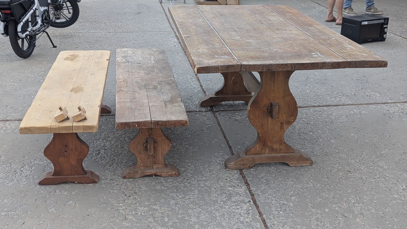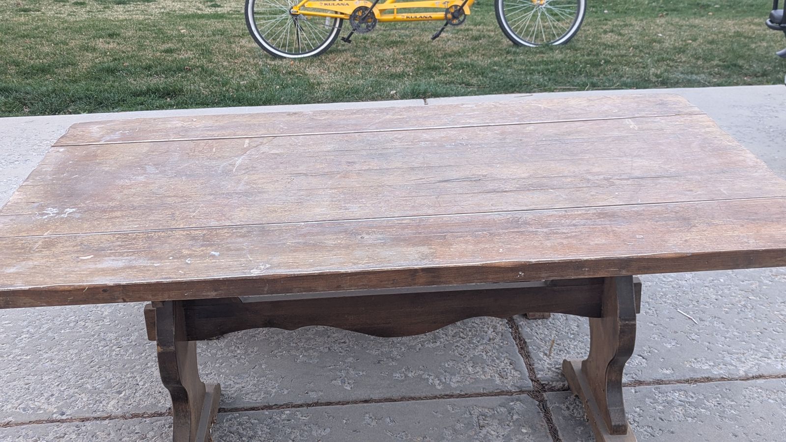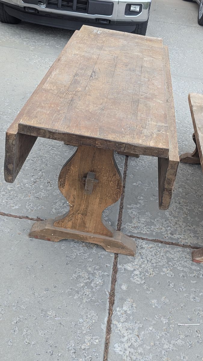 VenmoThis is a solid hardwood table. It needs to be sanded and stained to make it looks great again. This is great restore project