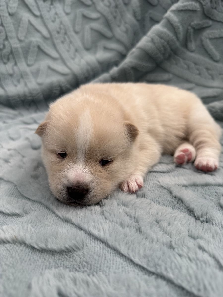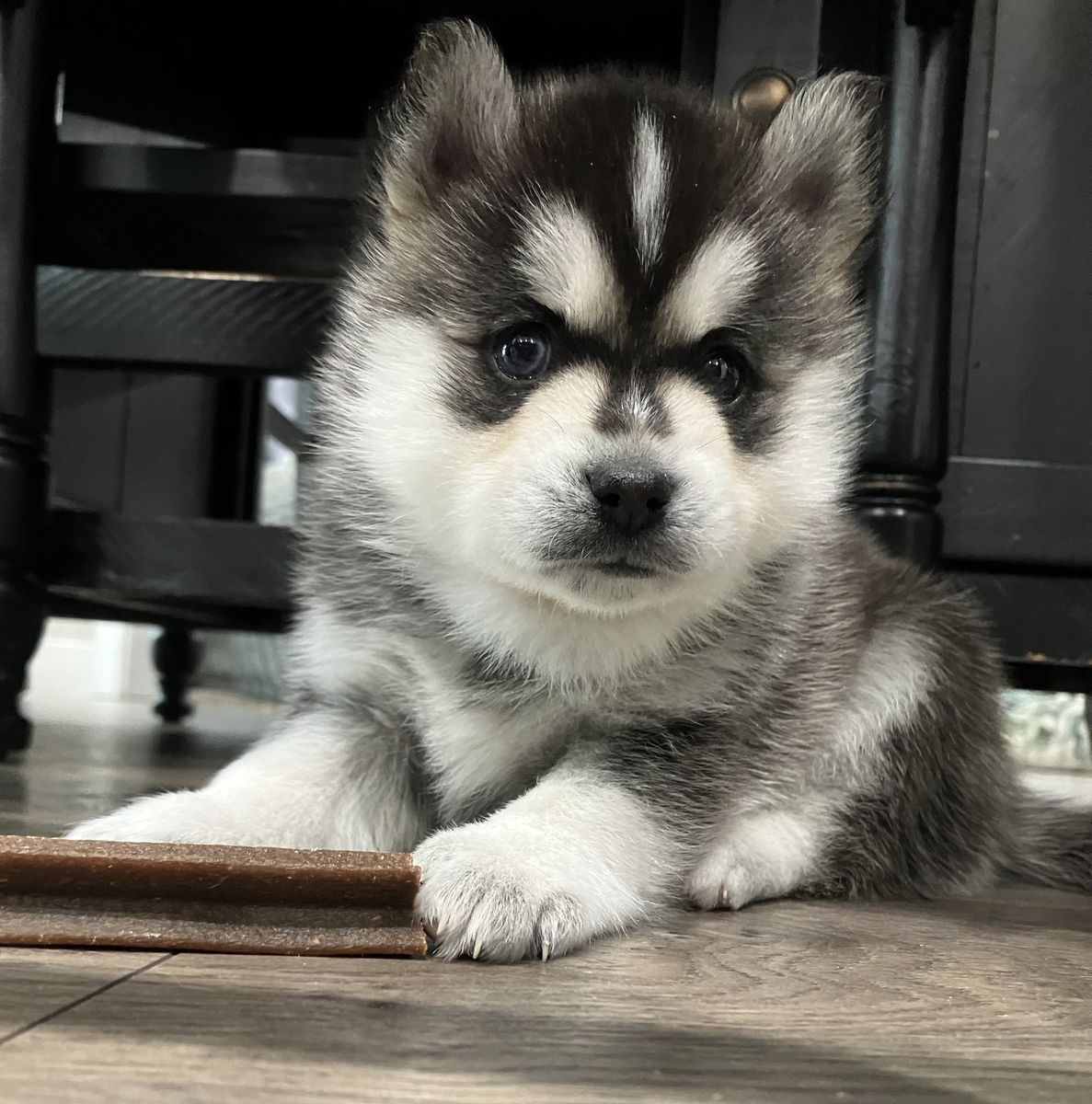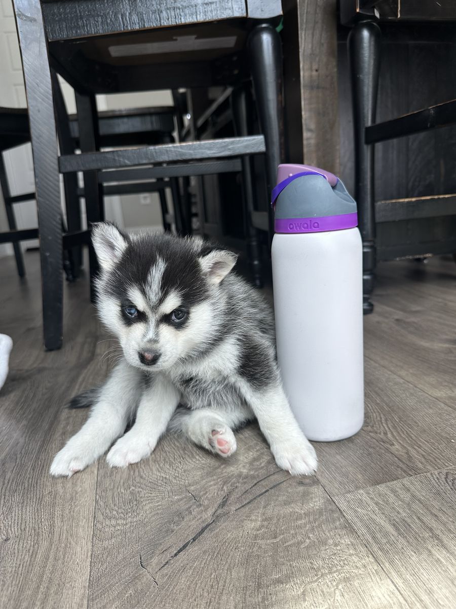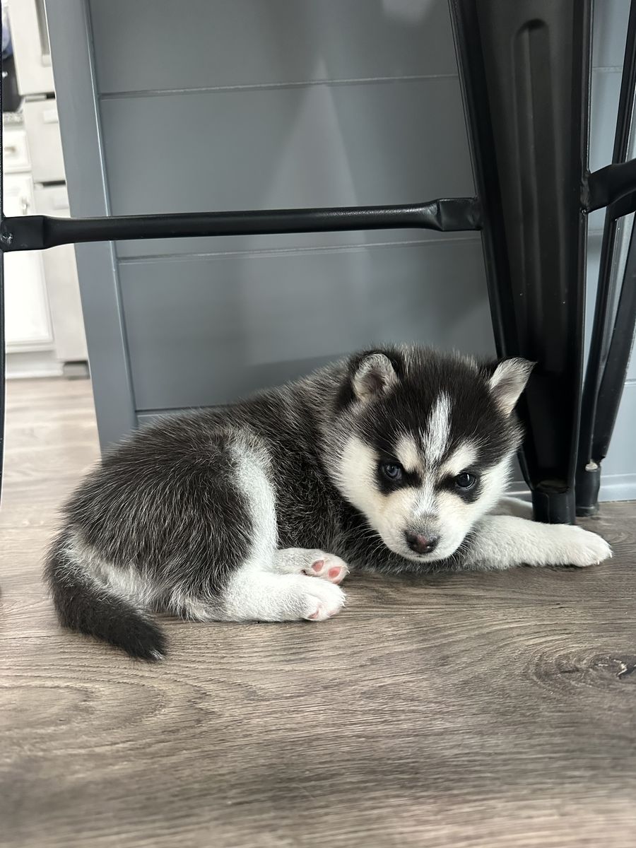 VenmoWe have 3 Pomsky F2 puppies for sale, 2 black/white males and 1 cream female. Both parents are F1 Pomskys and both are 14lbs they have all their shots up to date and embark genetic testing done. Parents have great temperaments and are part of our families. Puppies should stay under the 14 lbs range when adults. Puppies will come with first set of shots and complete vet check up. As well as food and mom scented blanket. Puppies are loved on everyday by us and our children, they are accustomed to different noises. Puppies were born 3/12/26 and will be ready to go at 7-8 weeks old, around the beginning of May.