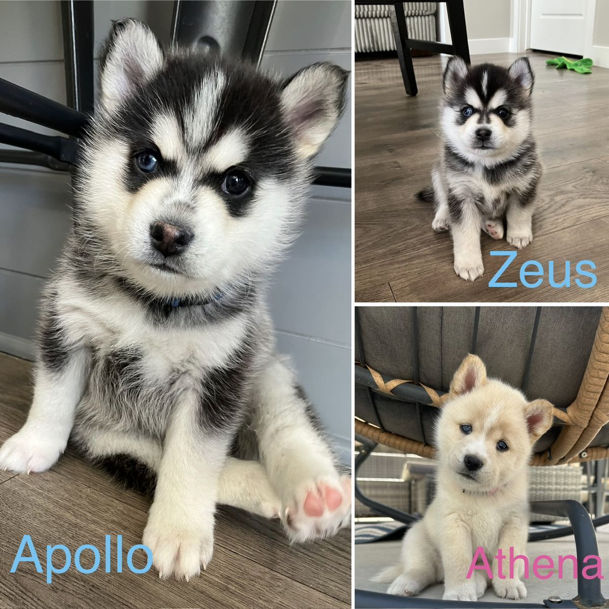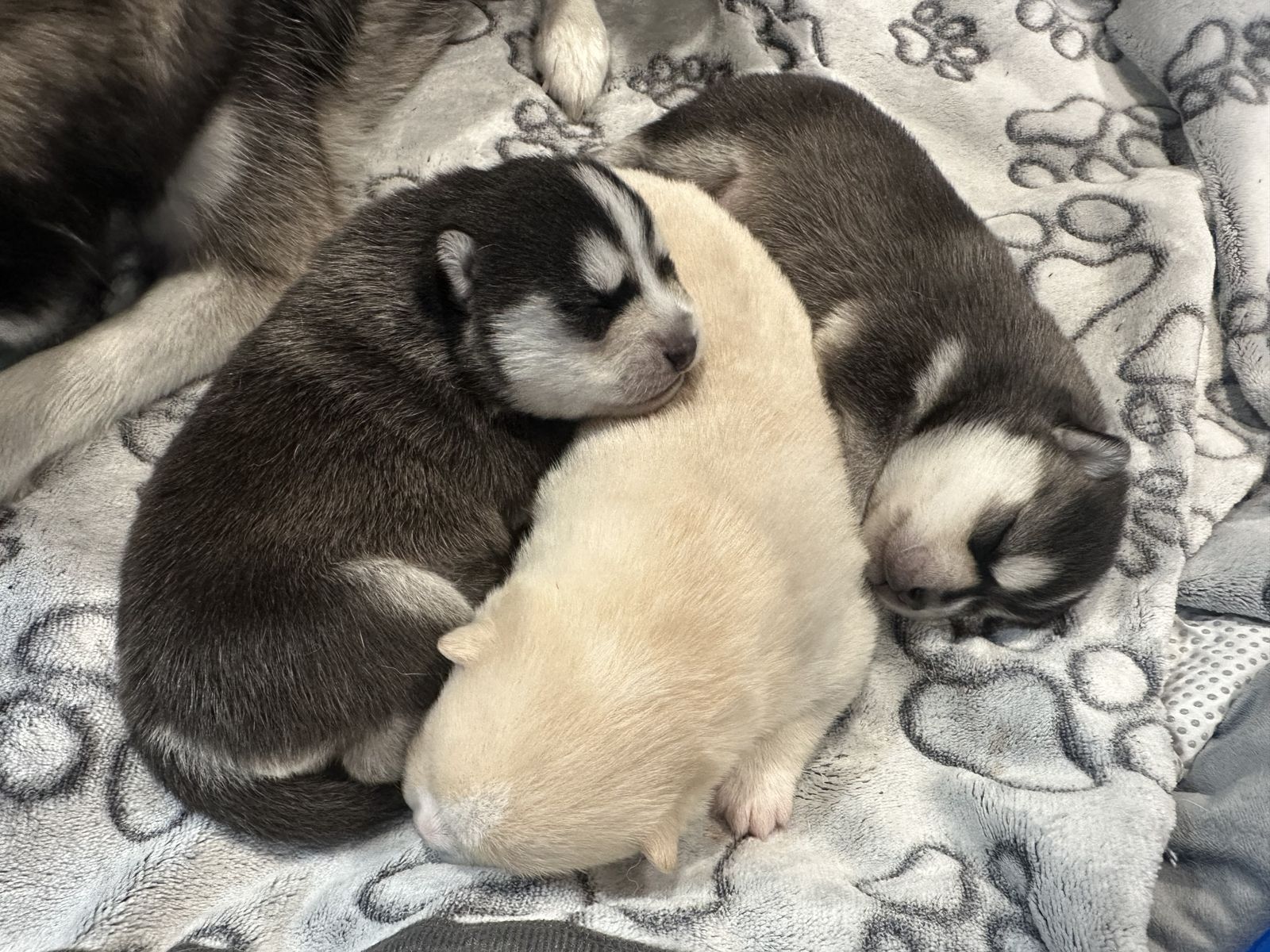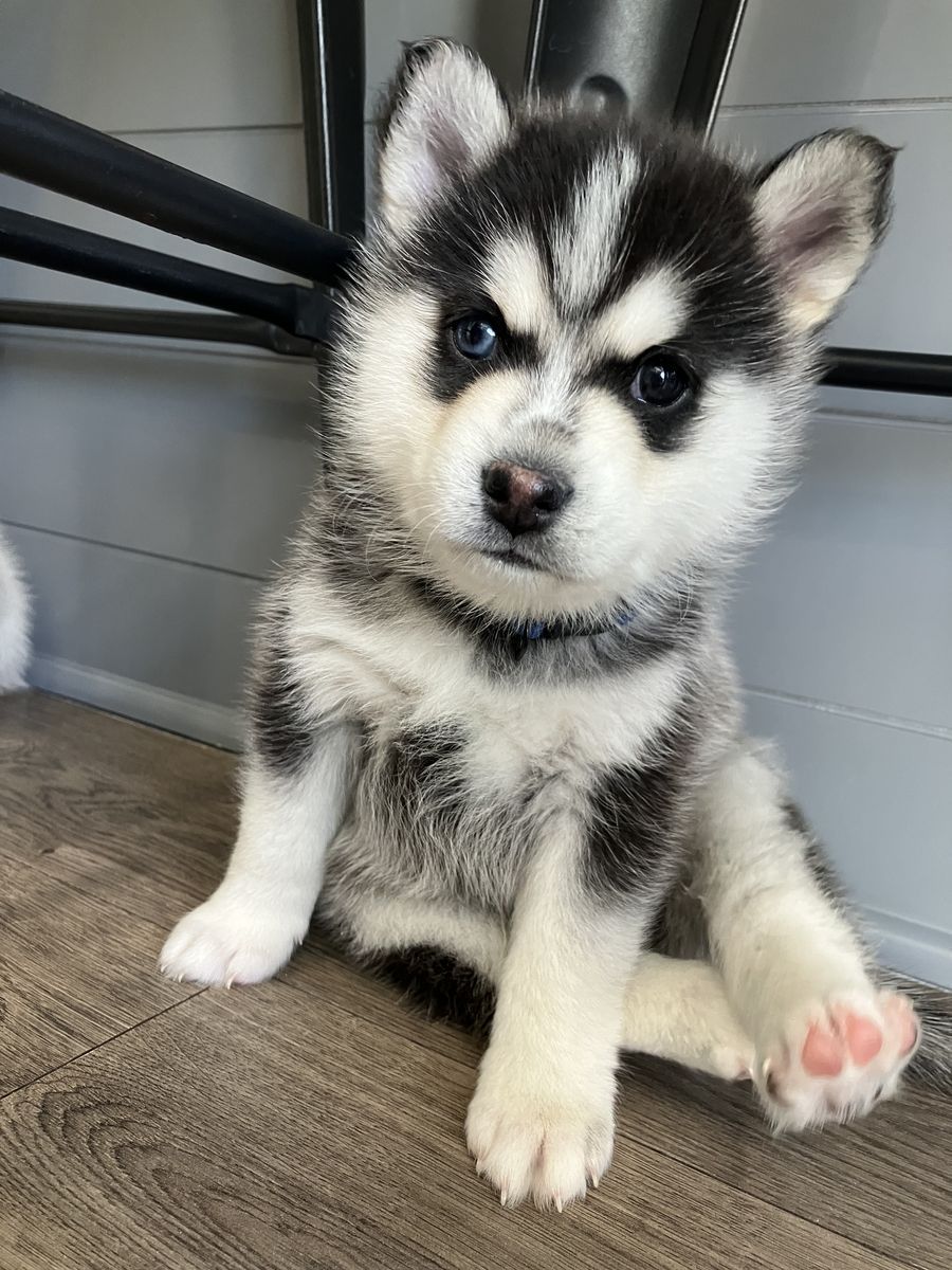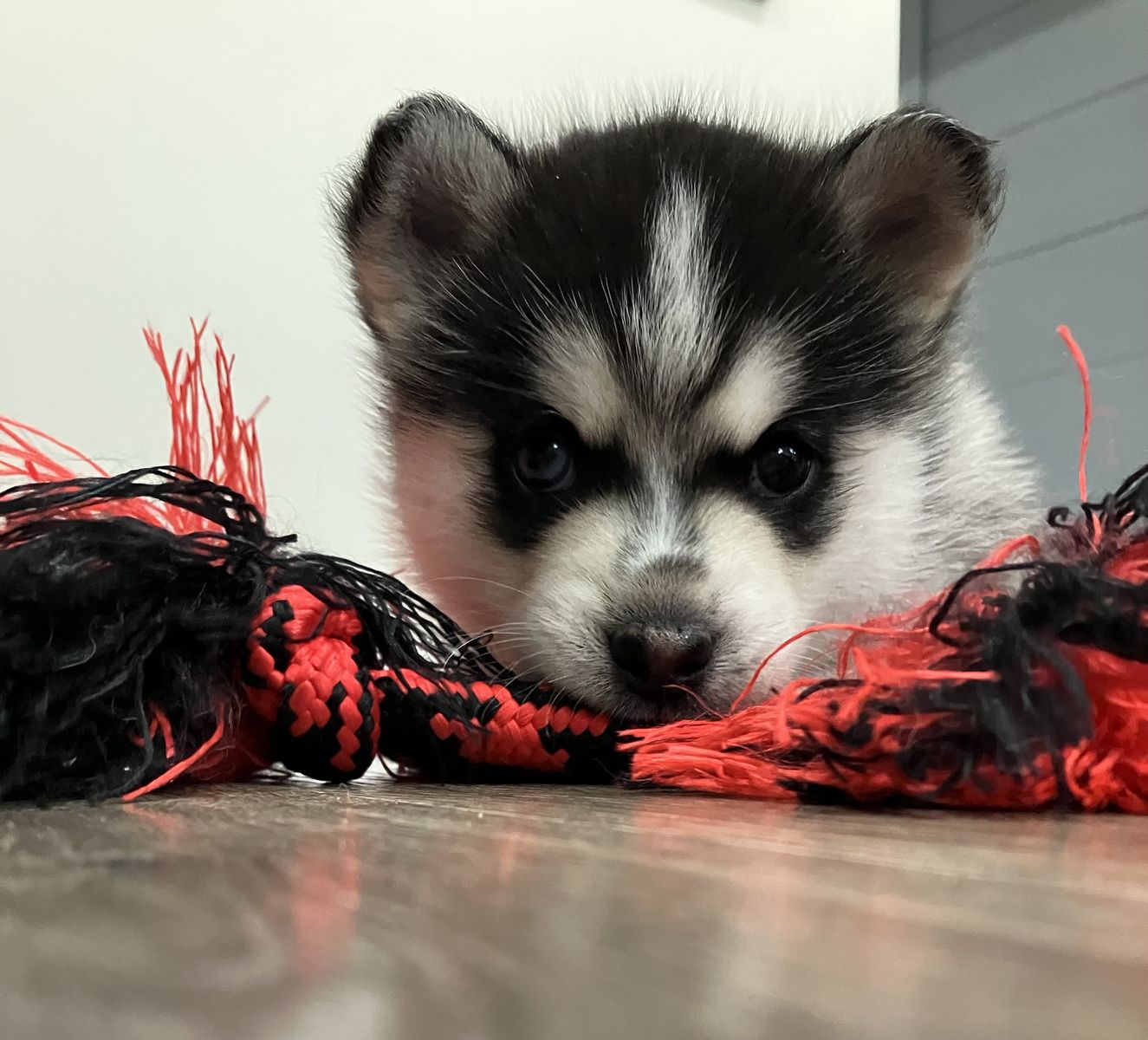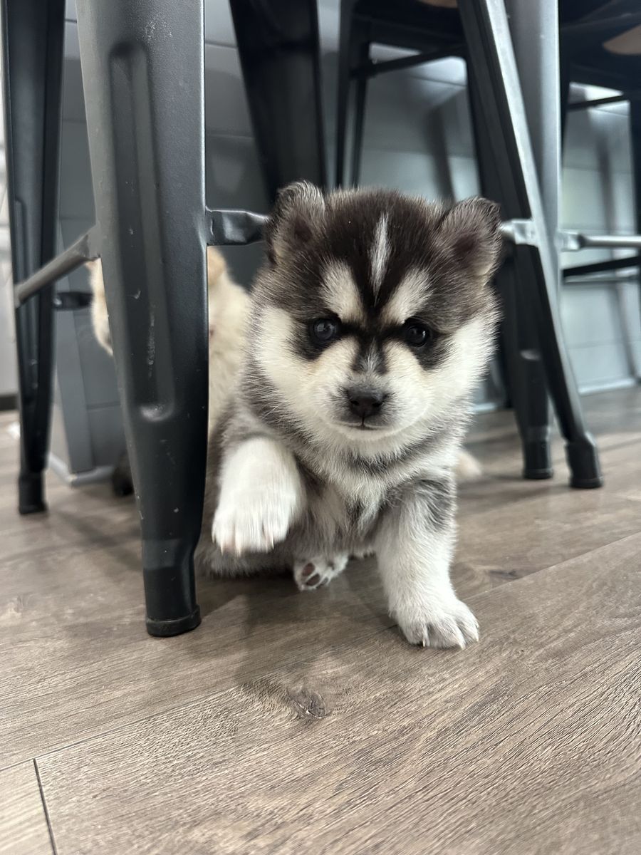 VenmoWe have 3 Pomsky F2 puppies for sale, 2 black/white males and 1 cream female. Both parents are F1 Pomskys and both are 14lbs they have all their shots up to date and embark genetic testing done. Parents have great temperaments and are part of our families. Puppies should stay under the 14 lbs range when adults. Puppies will come with first set of shots and complete vet check up. As well as food and mom scented blanket. Puppies are loved on everyday by us and our children, they are accustomed to different noises. Puppies were born 3/12/26 and will be ready to go at 7-8 weeks old, around the beginning of May.