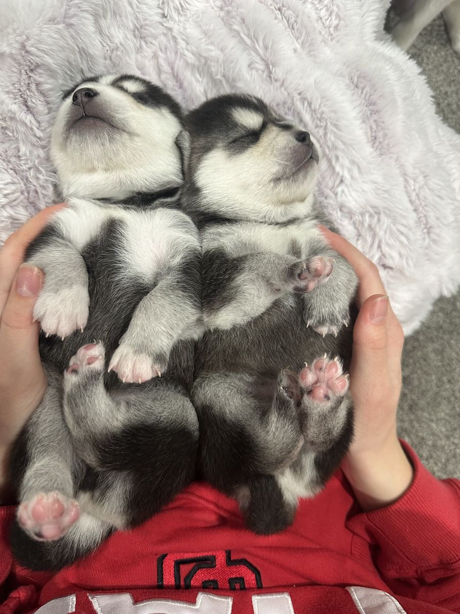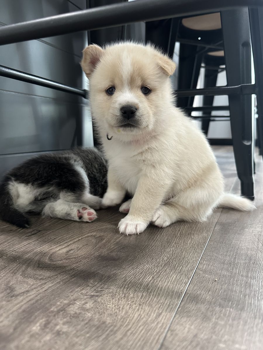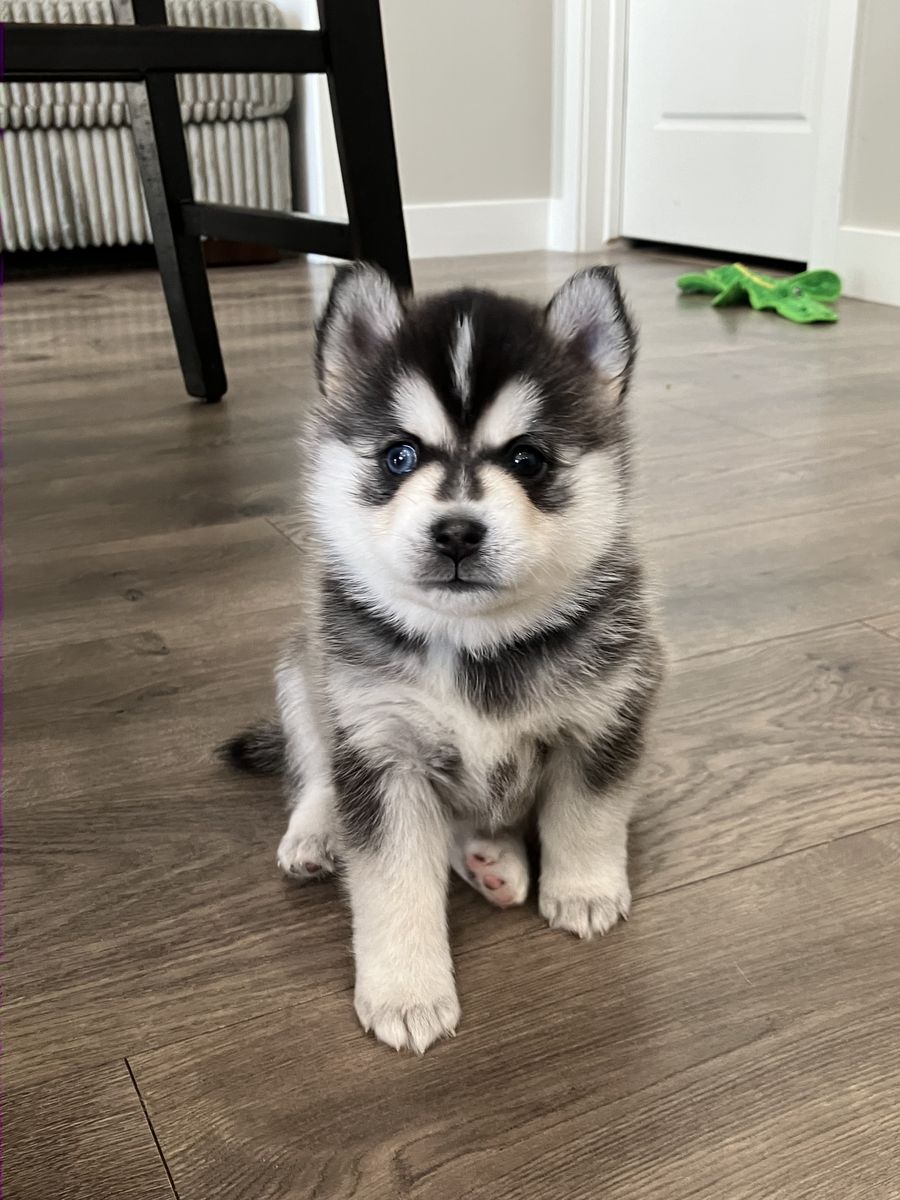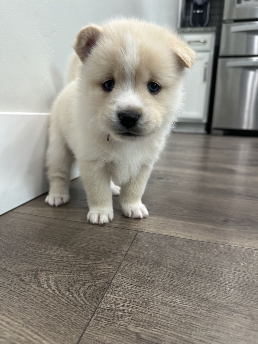 VenmoWe have 3 Pomsky F2 puppies for sale, 2 black/white males and 1 cream female. Both parents are F1 Pomskys and both are 14lbs they have all their shots up to date and embark genetic testing done. Parents have great temperaments and are part of our families. Puppies should stay under the 14 lbs range when adults. Puppies will come with first set of shots and complete vet check up. As well as food and mom scented blanket. Puppies are loved on everyday by us and our children, they are accustomed to different noises. Puppies were born 3/12/26 and will be ready to go at 7-8 weeks old, around the beginning of May.