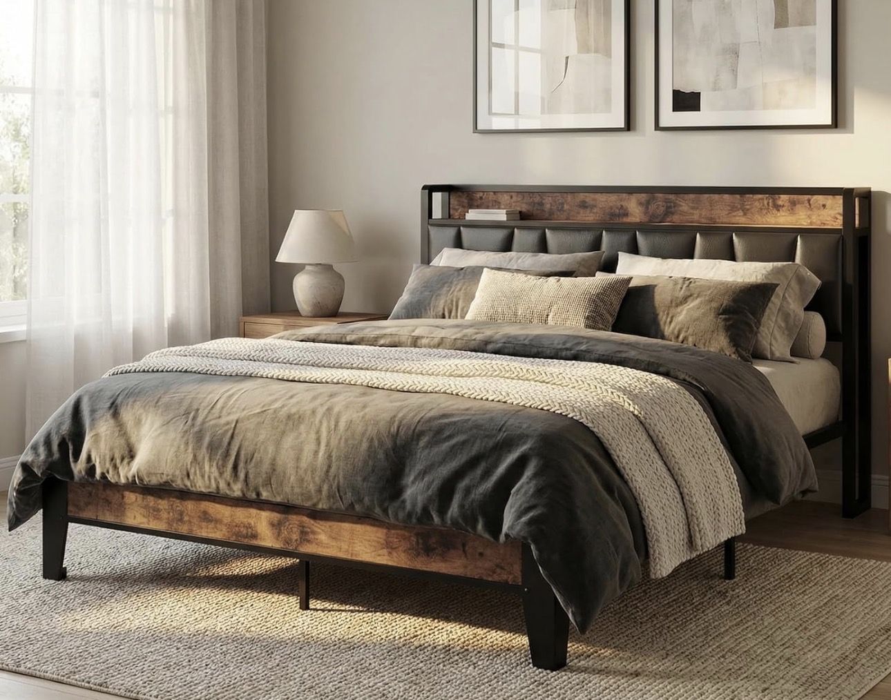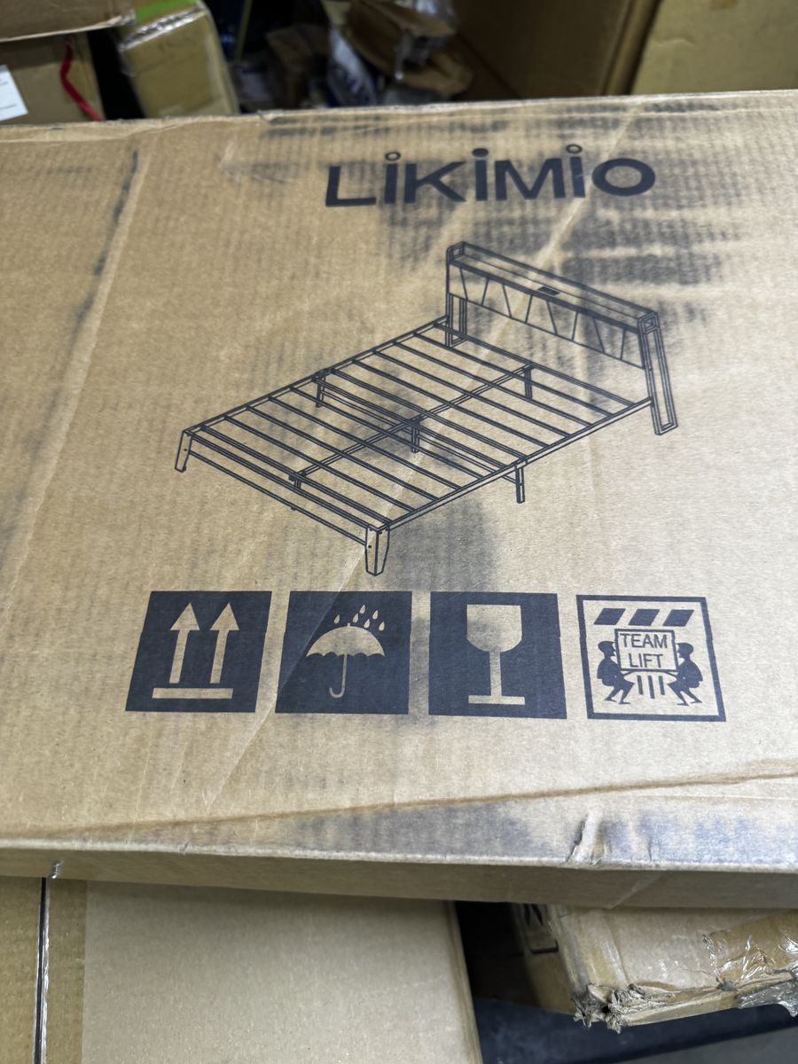 VenmoLIKIMIO Queen Bed Frame, Storage Headboard with Charging Station, Solid and Stable