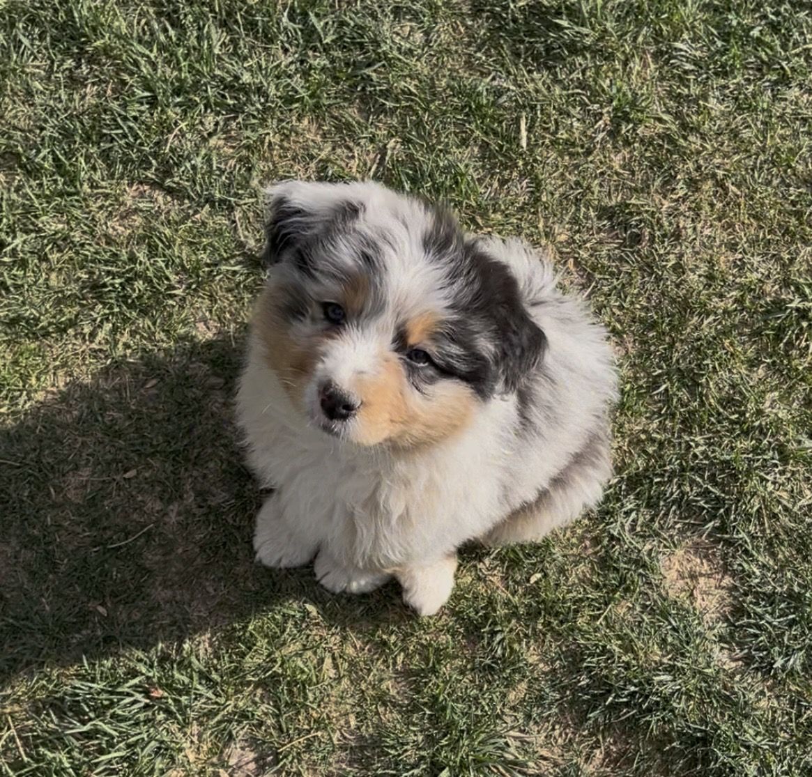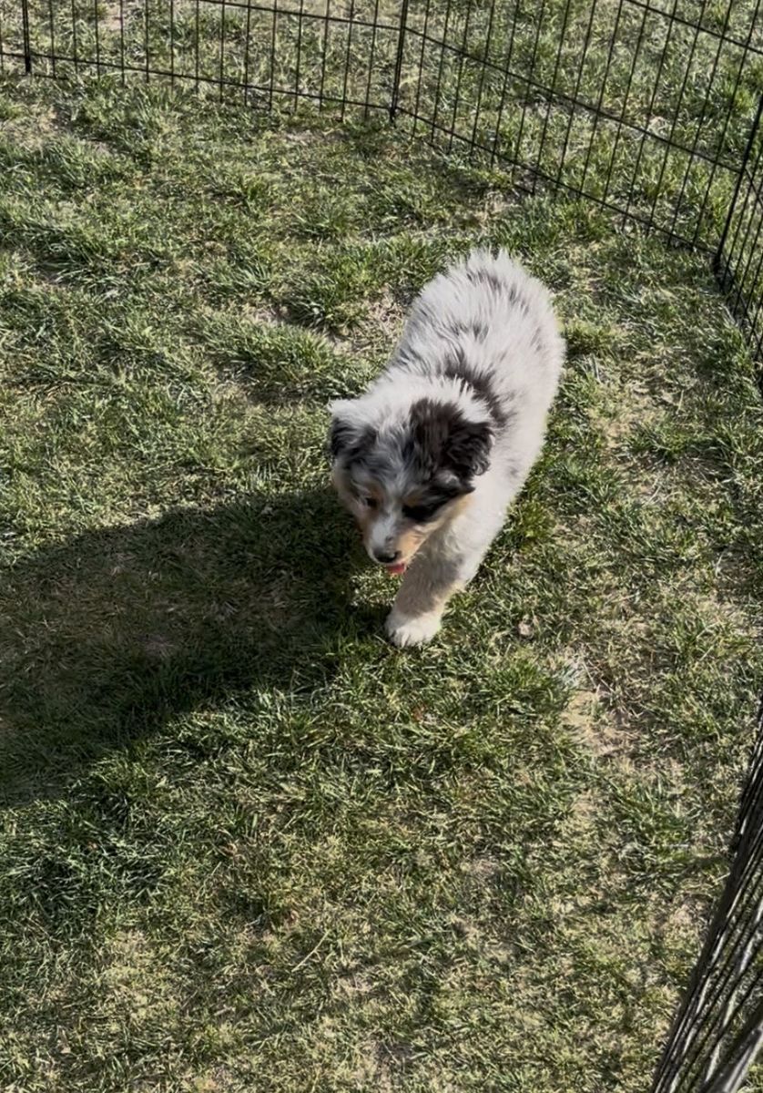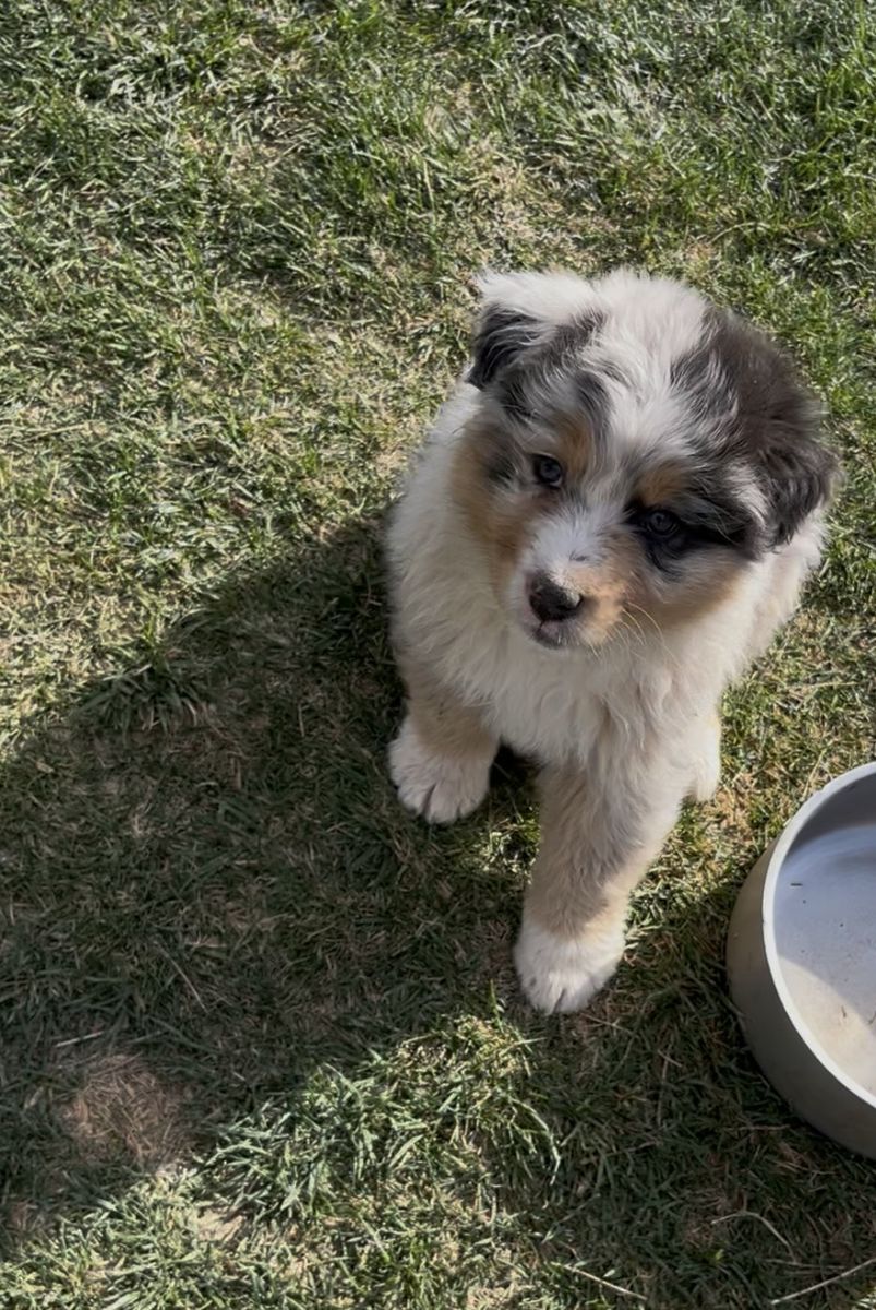 Beautiful aussie male puppy. He's the last of the litter and ready for his forever home. Eight weeks old , had first puppy shot , wormed a couple times and he's very socialized. Loves people!