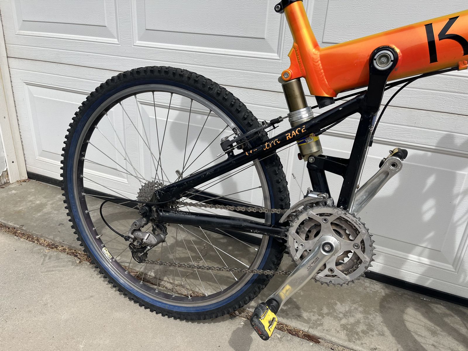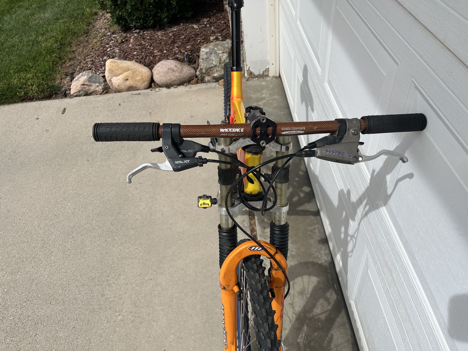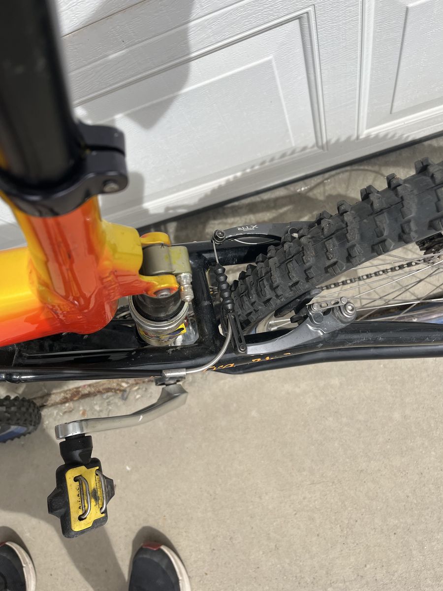 This is the rare LT (or long travel) version in KOI Orange with XT components in very good condition in size 19 inch. Needs a front brake bleed and shock seal kit.