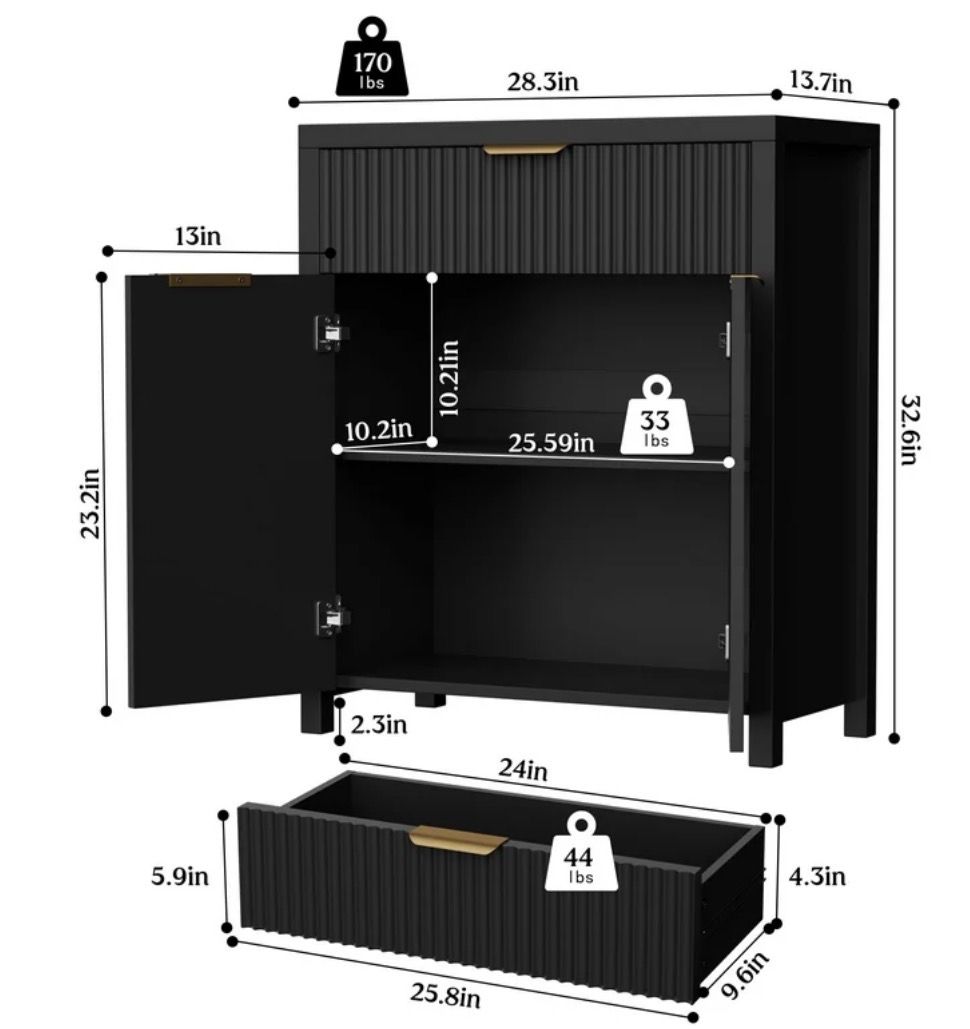 VenmoStorage Cabinet with Drawer Sideboard Buffet Cabinet with Adjustable Shelves, Black Brand new in box. Assembly is required but would fit in any vehicle