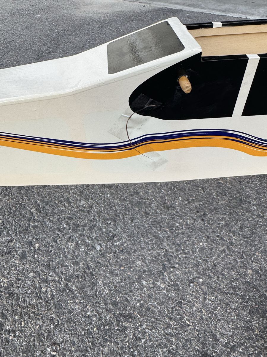 Its a 60" wingspan and 50" long and 7" tall. Its in good shape. Small crack on side of plane (see pictures)
