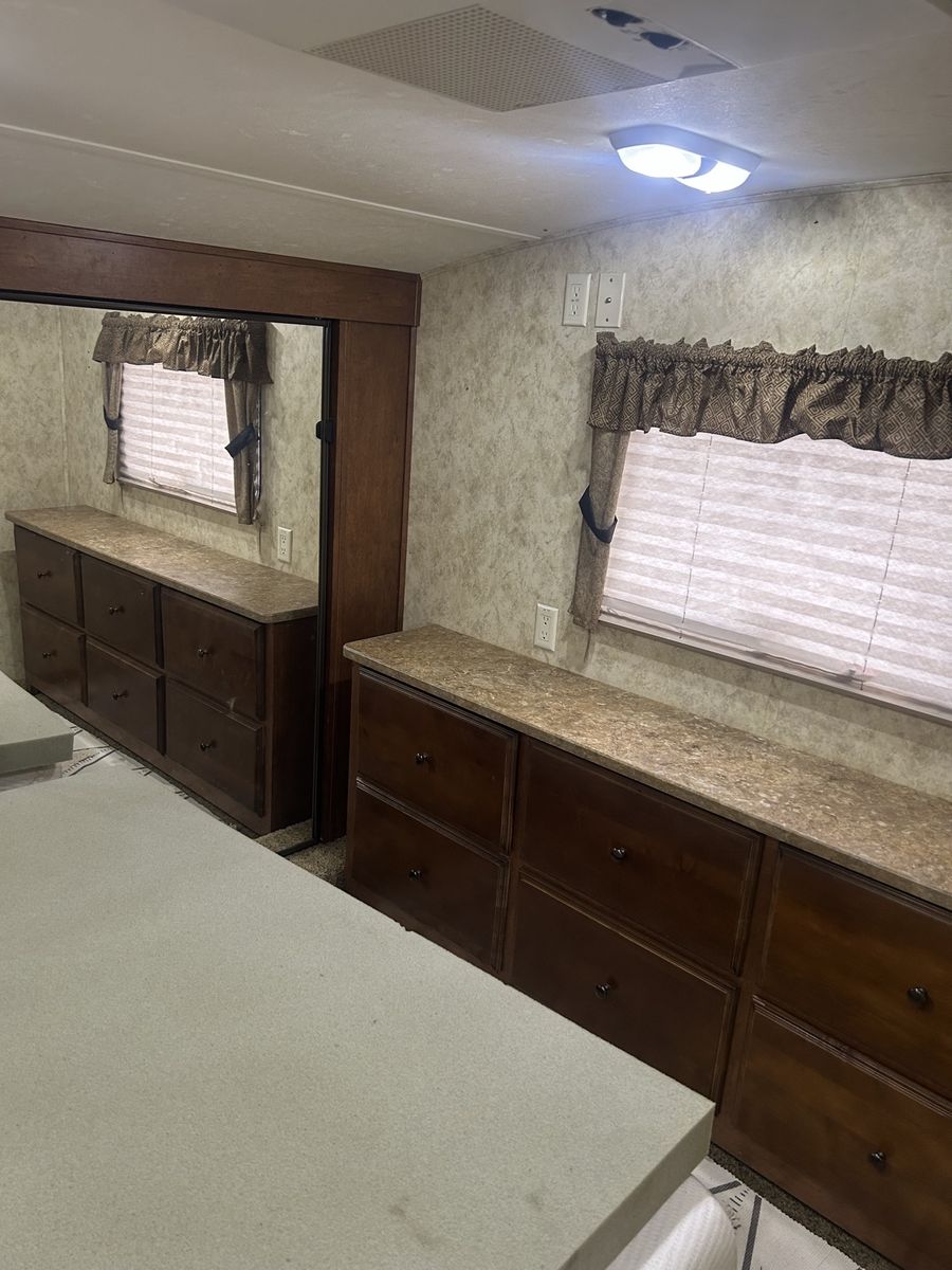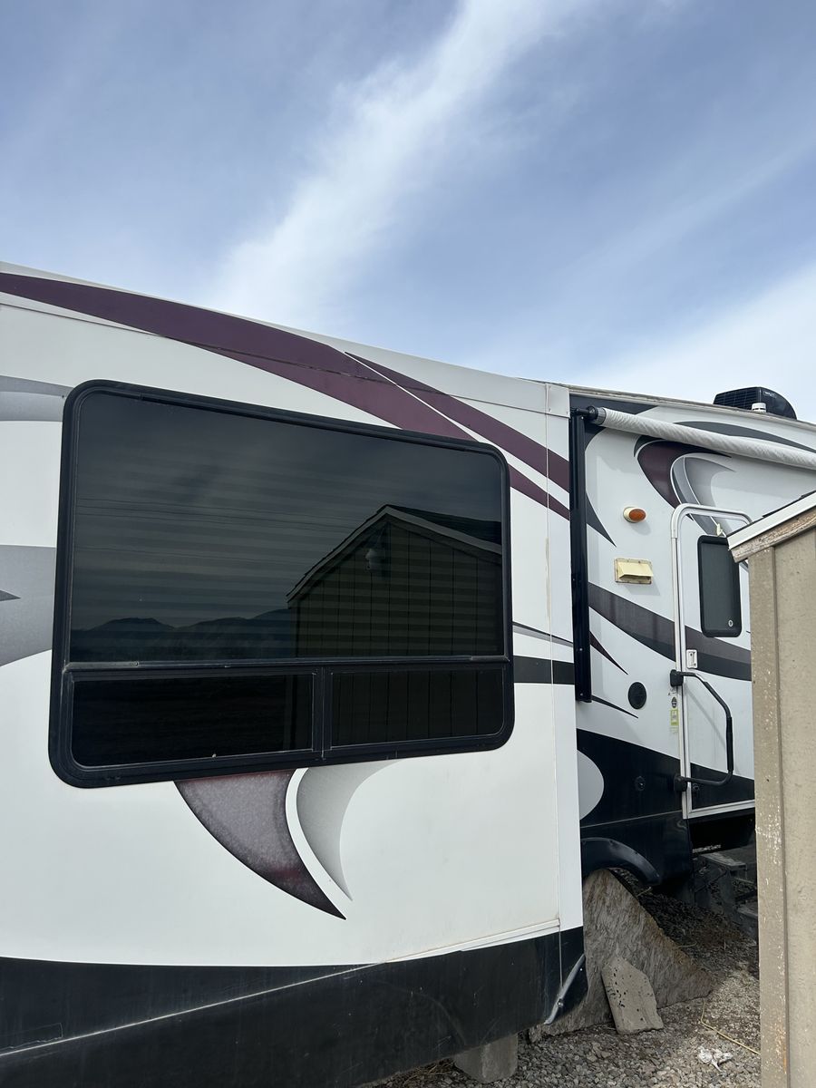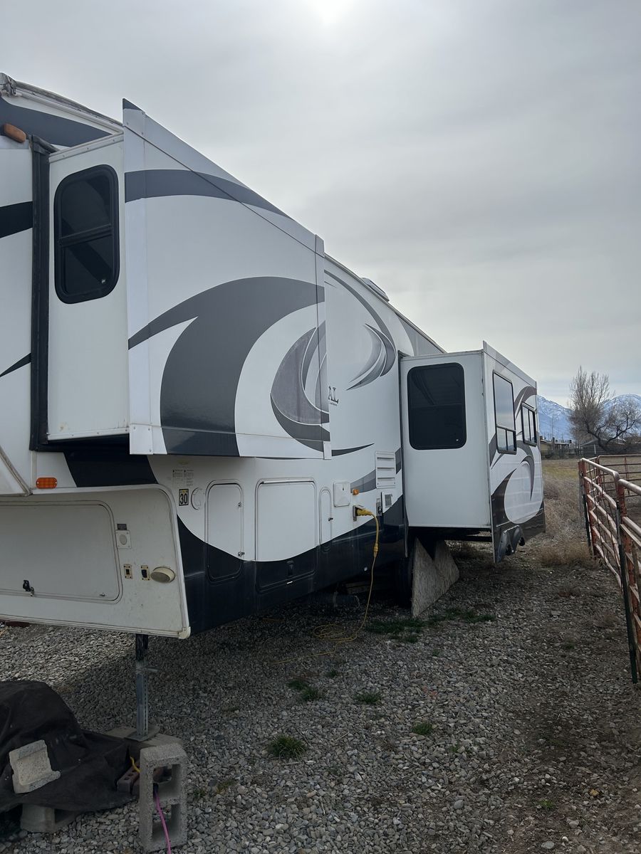 2012 overall length is 34 foot It weighs only 9600 dry Two Alc units, closes belly. 300 watt solar system with 6 batteries, 2 solar panels 150 watts each. 3,000 watt inverter. With the solar system we don't have to hardly use a generator. Tires are in great shape. New awning It's been covered every winter This trailer is in excellent shape, With an open floor plan, very roomy and comfortable. Three slide outs, two in the family room area and one in the bedroom. Very comfortable bed in bed room. Table and couch fold down to beds! Tons of storage space inside and outside of the trailer. Everything works awesome! we have absolutely loved this trailer but we don't use it much anymore. $20,000 Call or text Mike 801-830-2527