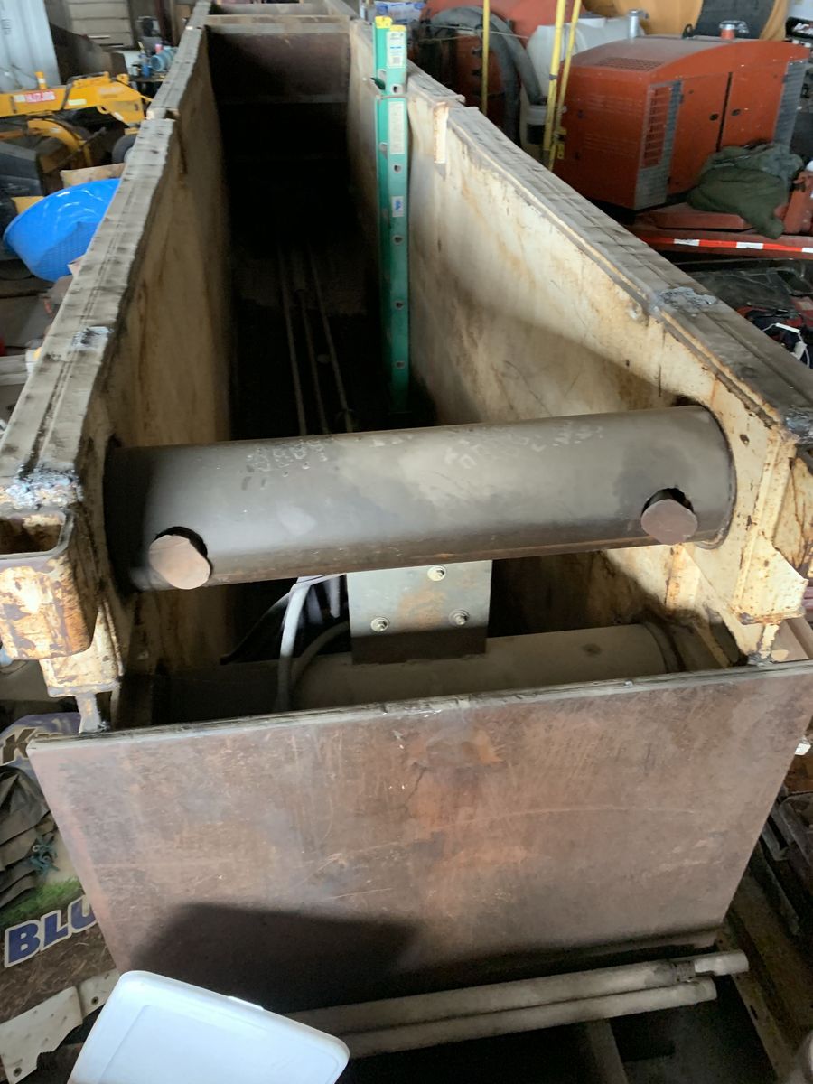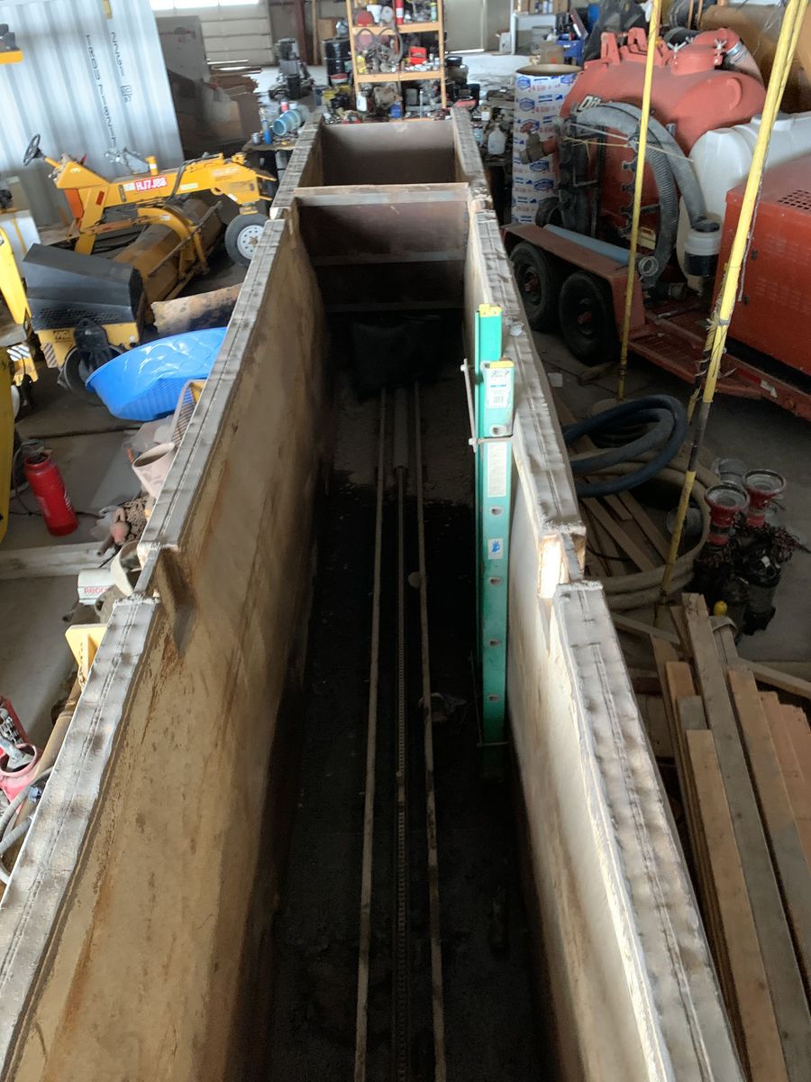 6' x 24' trench box with 1" steel plated partial front and floor, rock hopper on back, and built in ladder. Was used to install pipe with the pipelayer completely within the box.