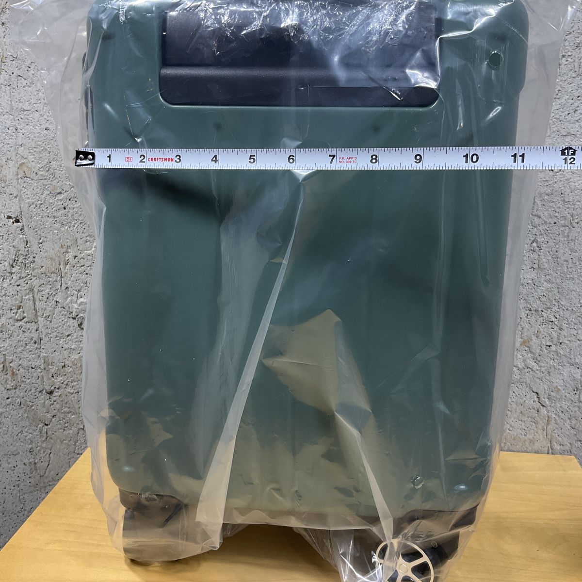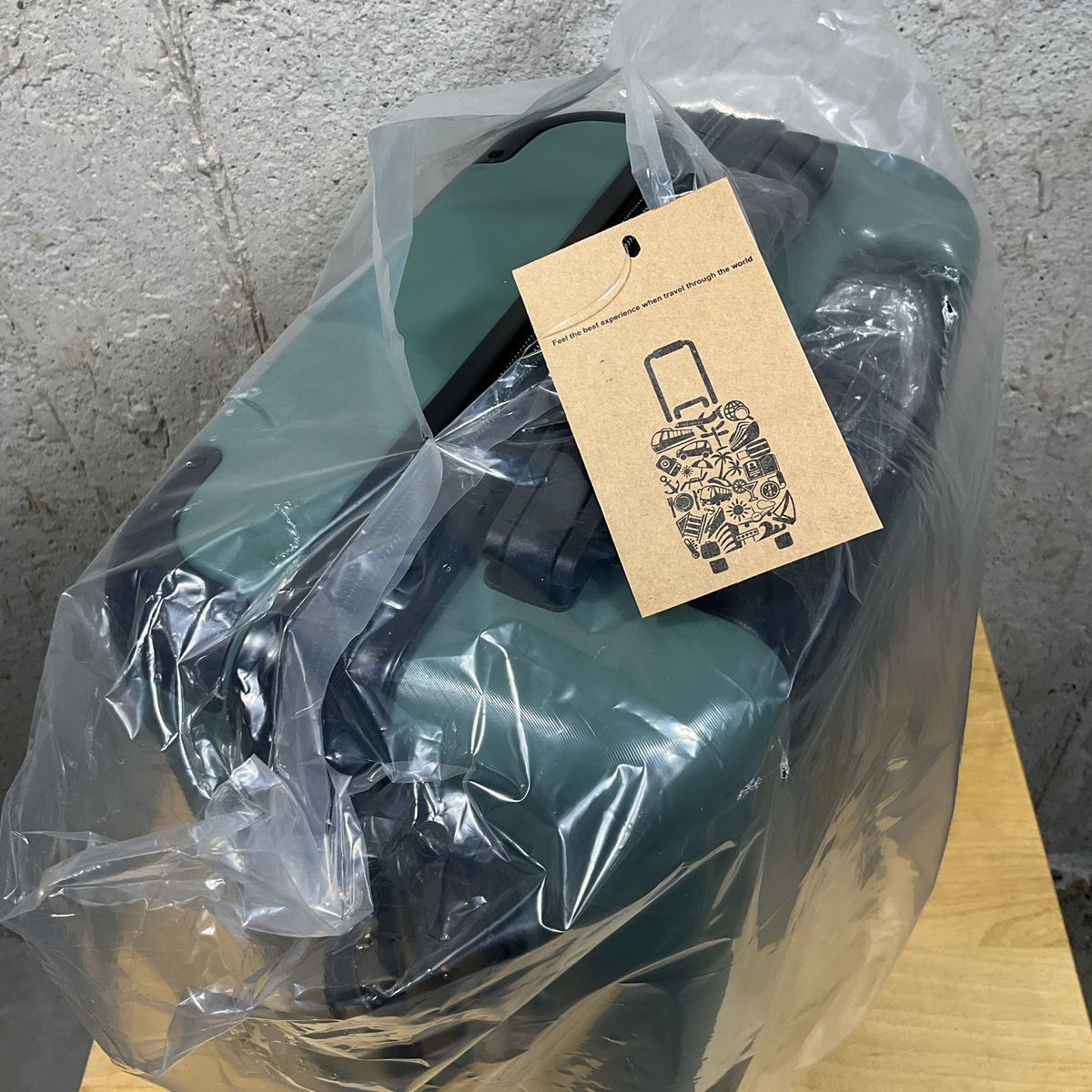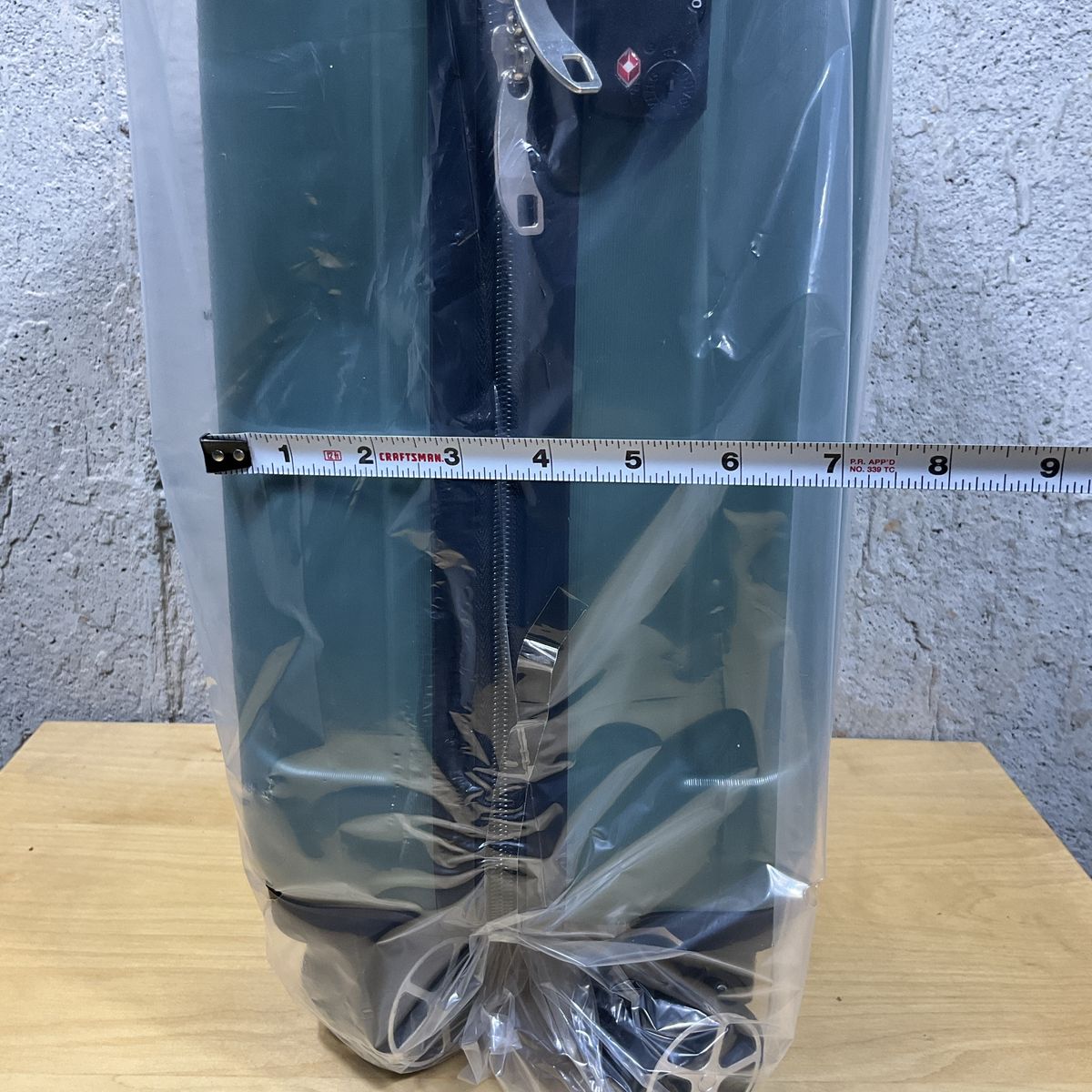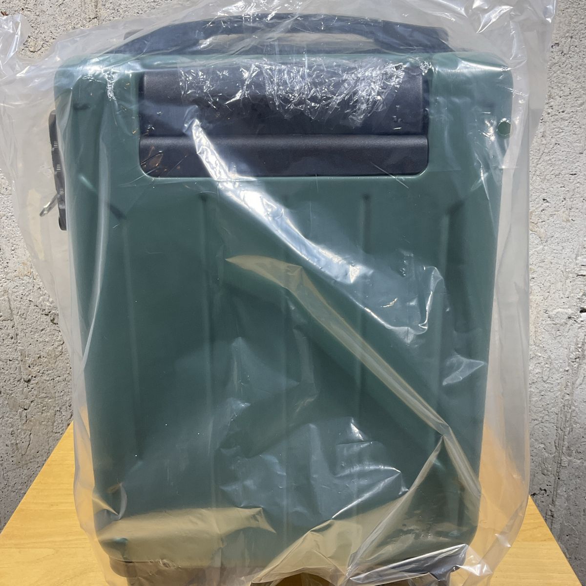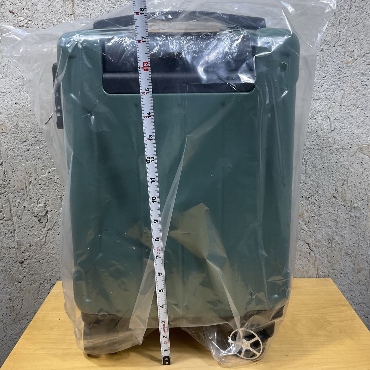 Small Suitcase Green New Hard Shell with spinner wheels 16 in., approximate dimension: 18.3 in. x 11 in. x 7 in