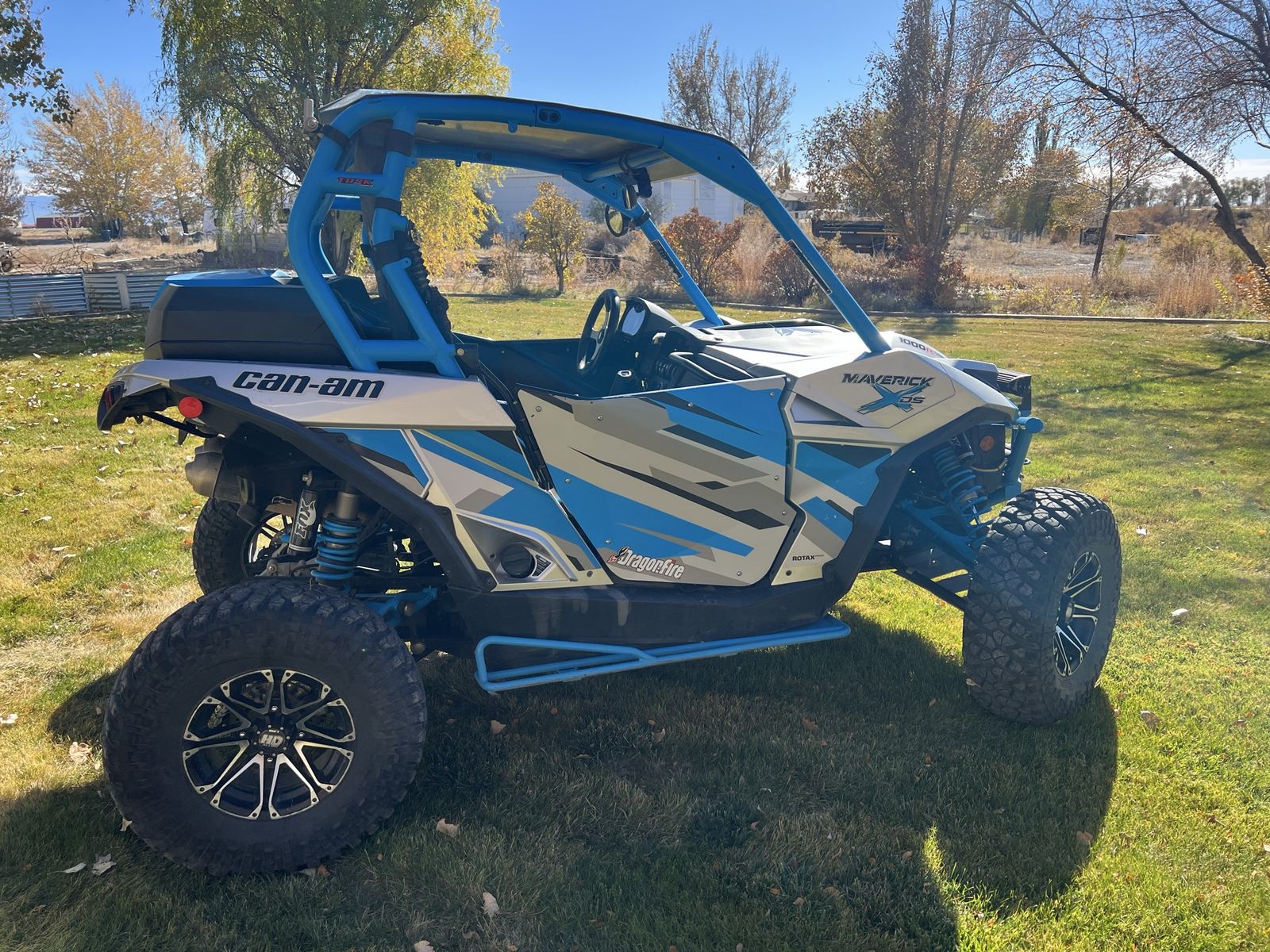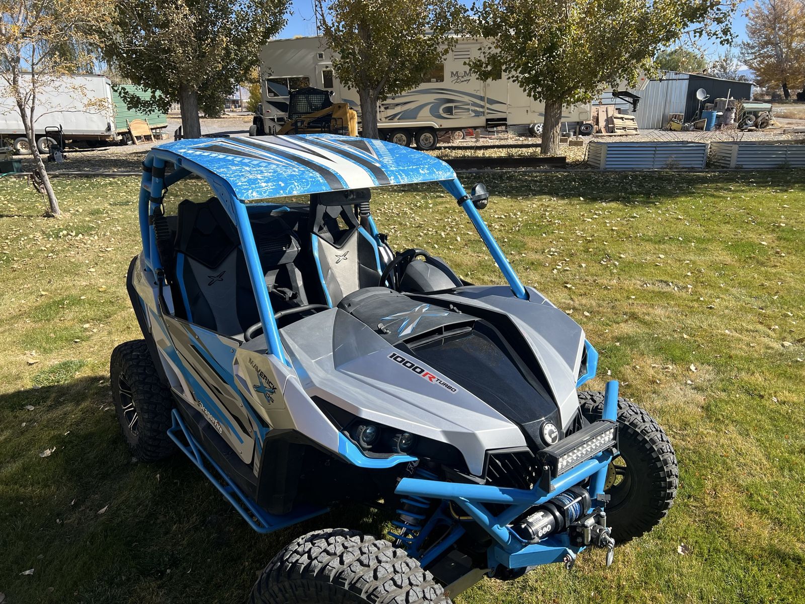 Great machine 120 hp has aftermarket doors with color match graphics ,aluminum roof, winch, light bar,front bumper,rhino axles,rock sliders,30” tires , I also have the original stock tires and wheels