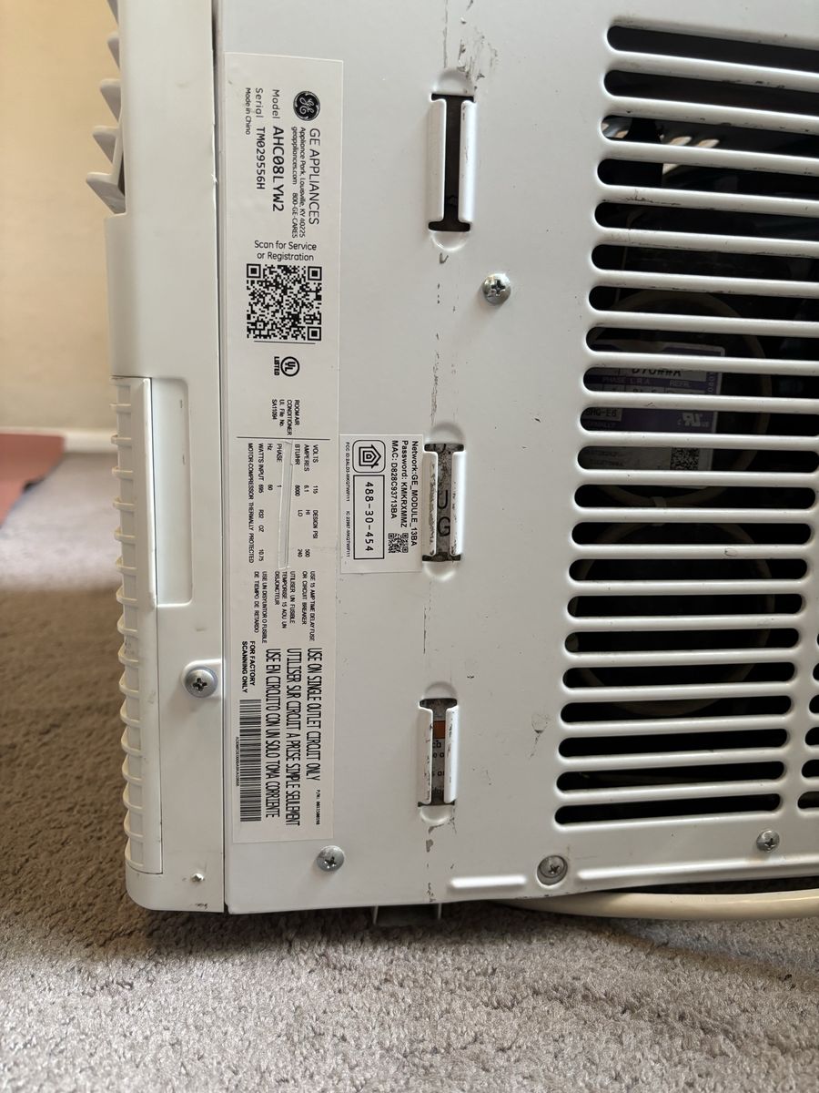 Details: • GE brand • 8,000 BTU • Standard outlet plug • Multiple cooling + fan settings • Good working condition • Minor cosmetic damage on back corner only • Ready for pickup