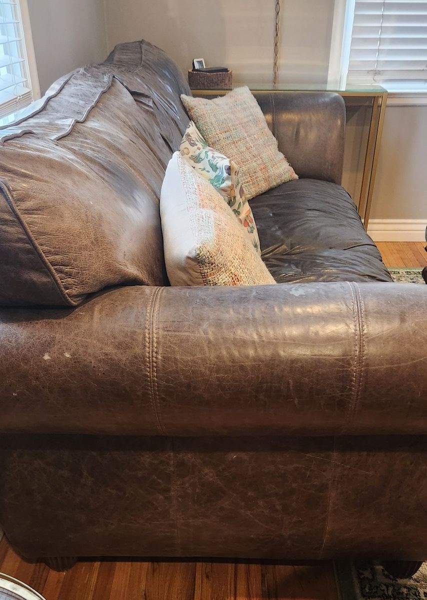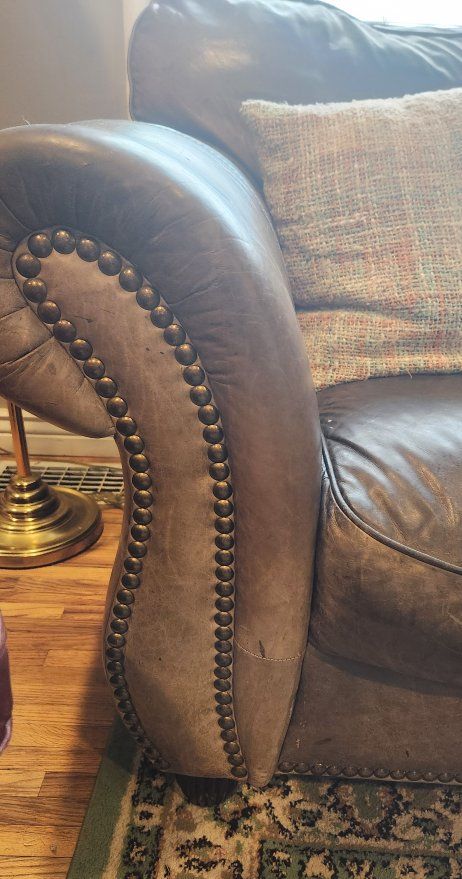 Free leather couch. Need gone before April 14th. Has some wear, but is still usable. One of the legs needs to be reattached. It still works by placing it where its supposed to go it just falls if couch is moved. Pick up in Midvale. Will need a truck and/or small trailer for transport. Will need at least two people to help lift and load it. Dimensions are: length: 88 inches (7.4 ft) Width: 39.5 inches Height: 37.5 inches **Pillows not included. Text only.