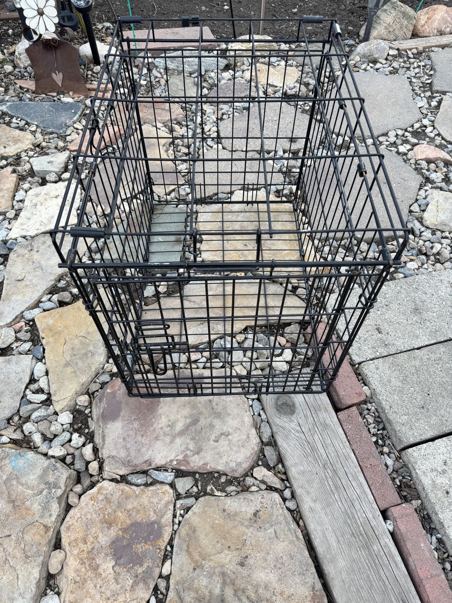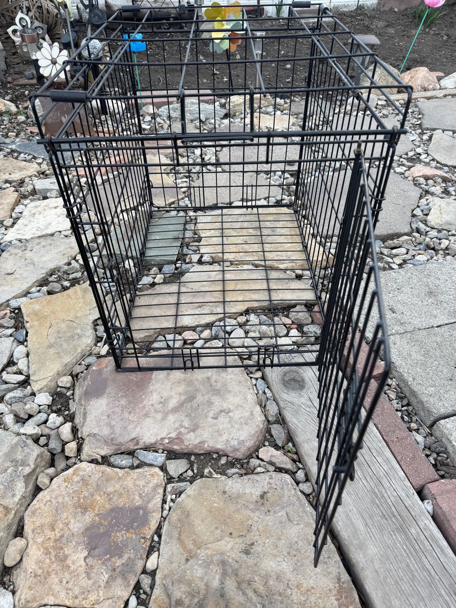 Metal Wire Animal Dog Crate or Kennel. Approx. 24" L x 17" W x 19" H. There is no bottom plate or pan. $15. If interested, please call or text, Cell#: 801-541-0420.