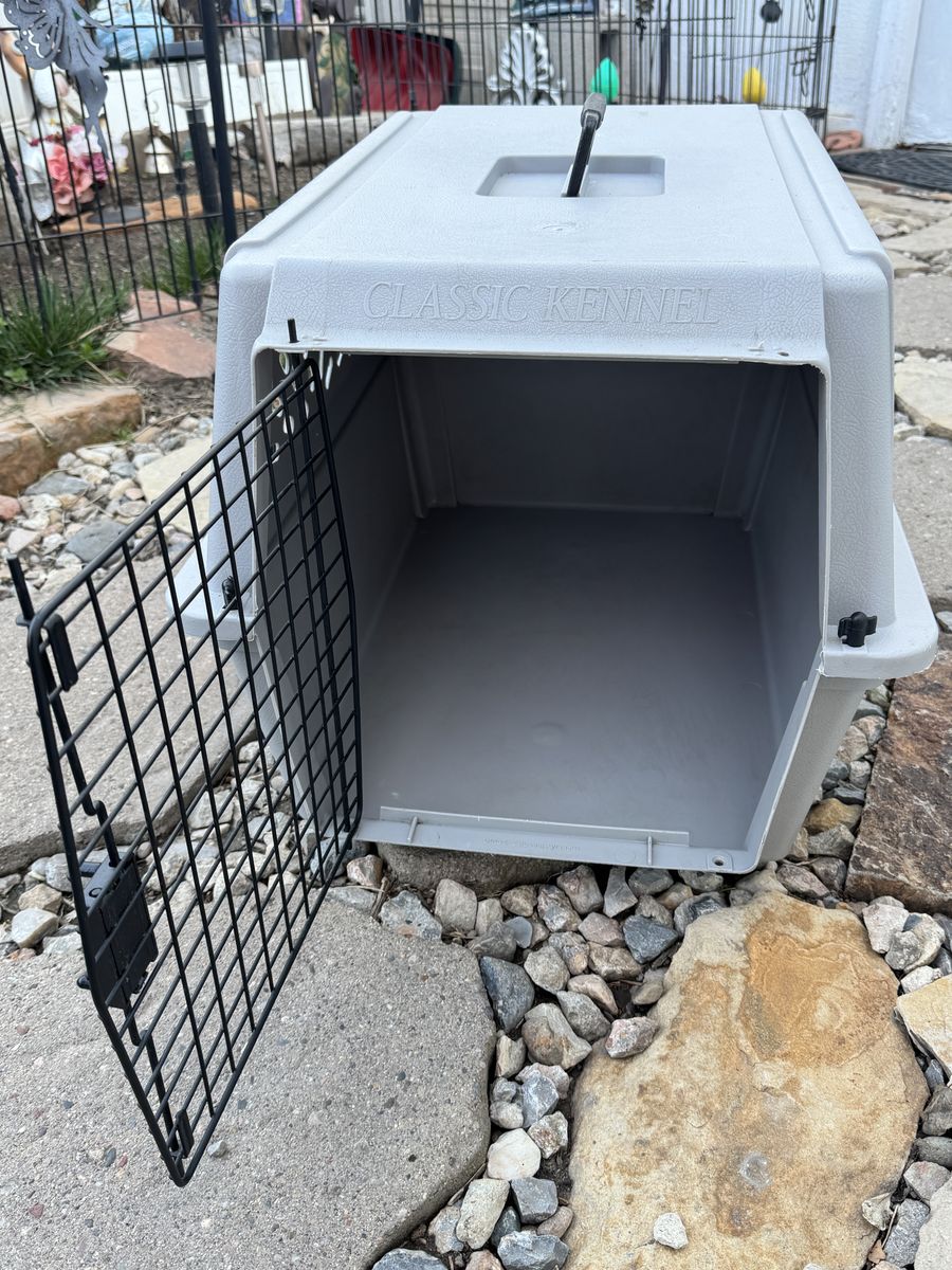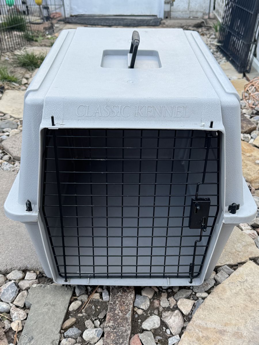 Classic Kennel - Med. size. Used, Approx. 26"L x 18"W x 16"H. $20. If interested, please call or text, Cell#: 801-541-0420.