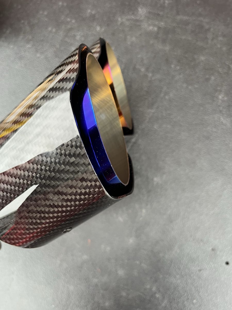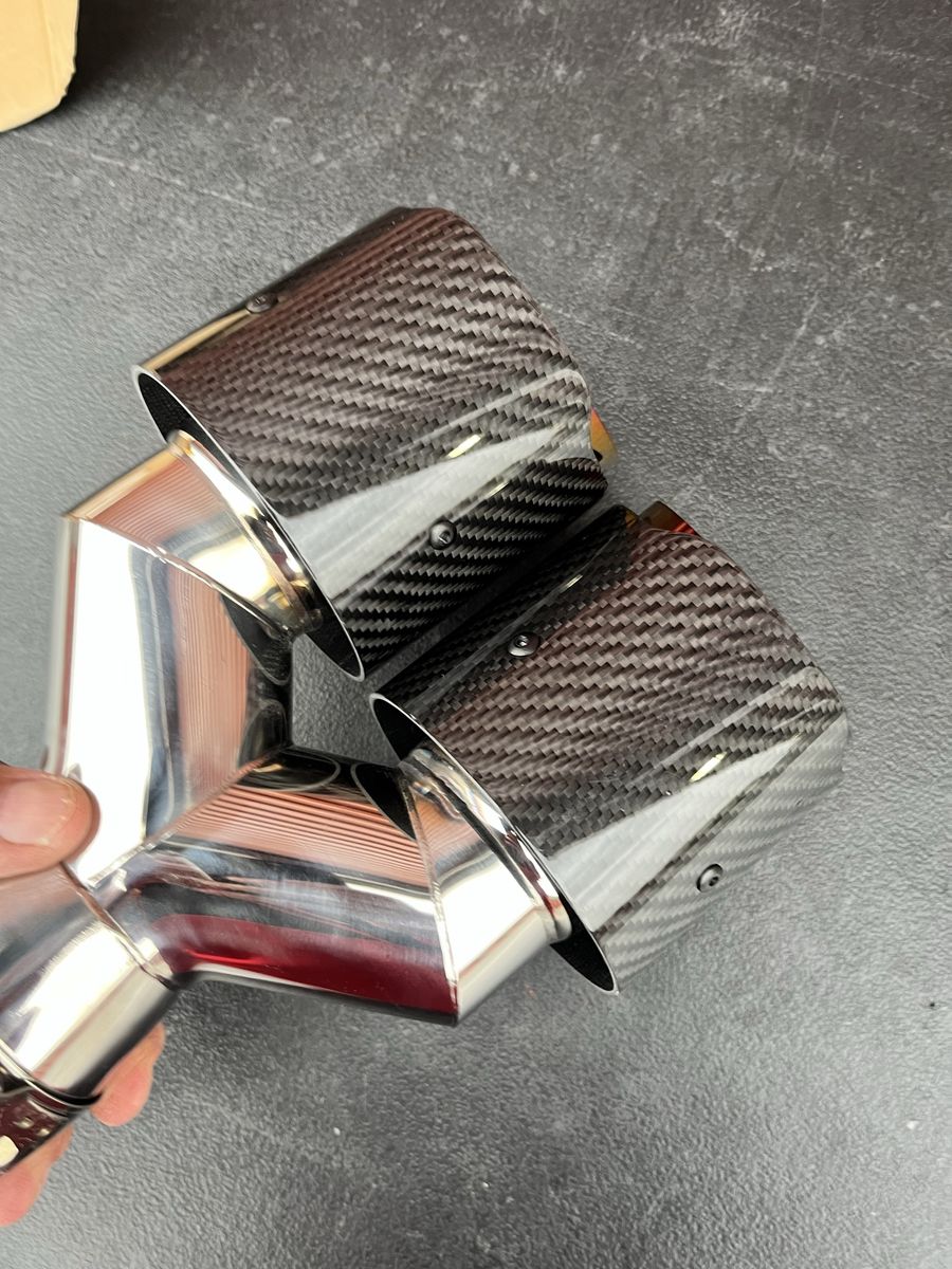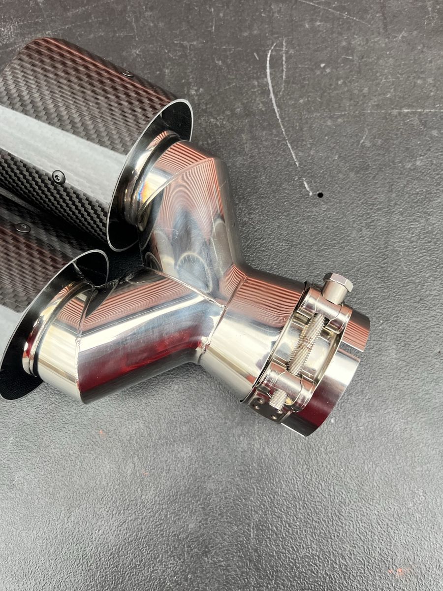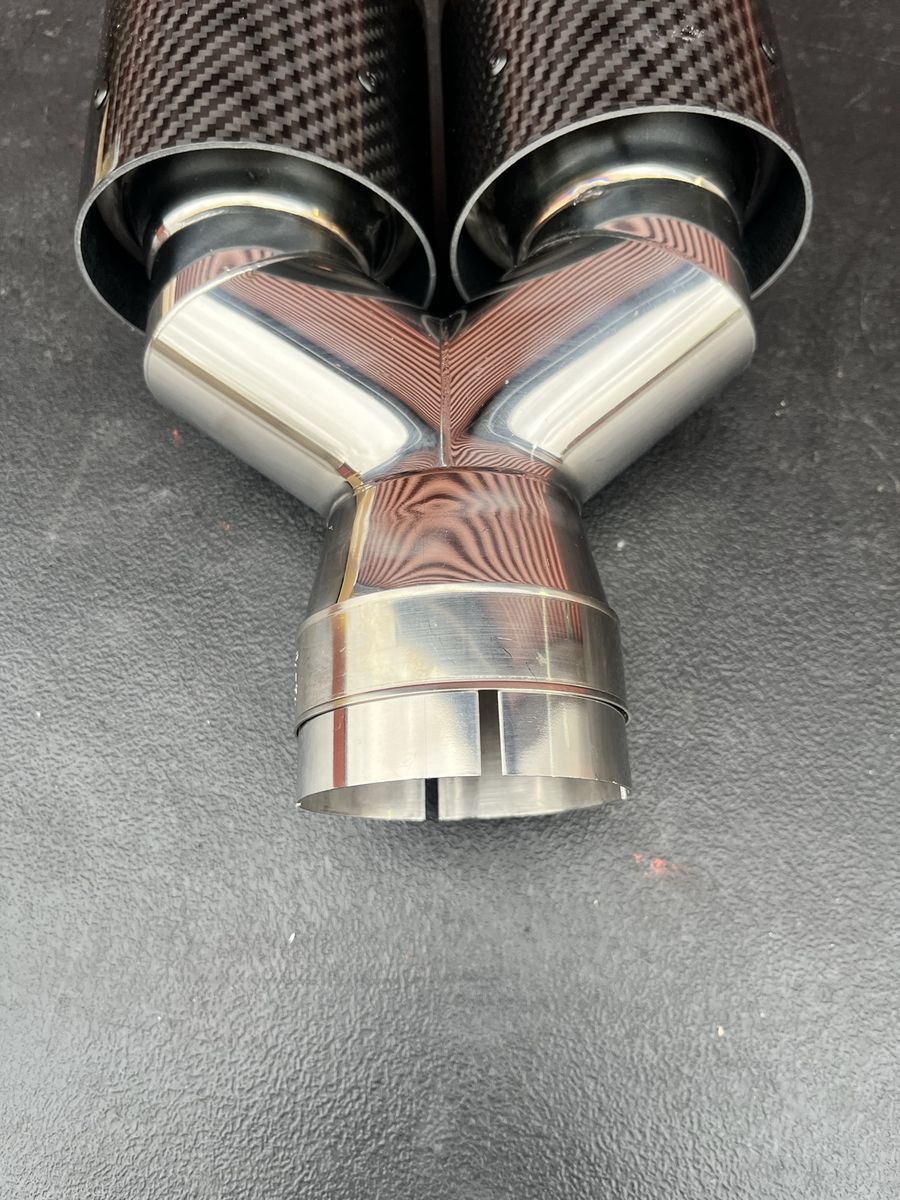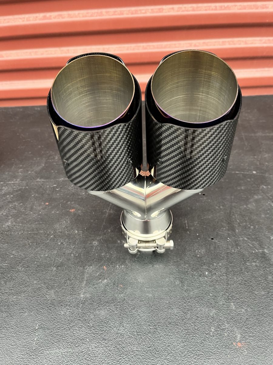 VenmoBielpord Dual Carbon Fiber Exhaust Tip 3" Inlet to Dual 4" Outlet Tailpipe tip Universal for Vehicles Blue Brand New