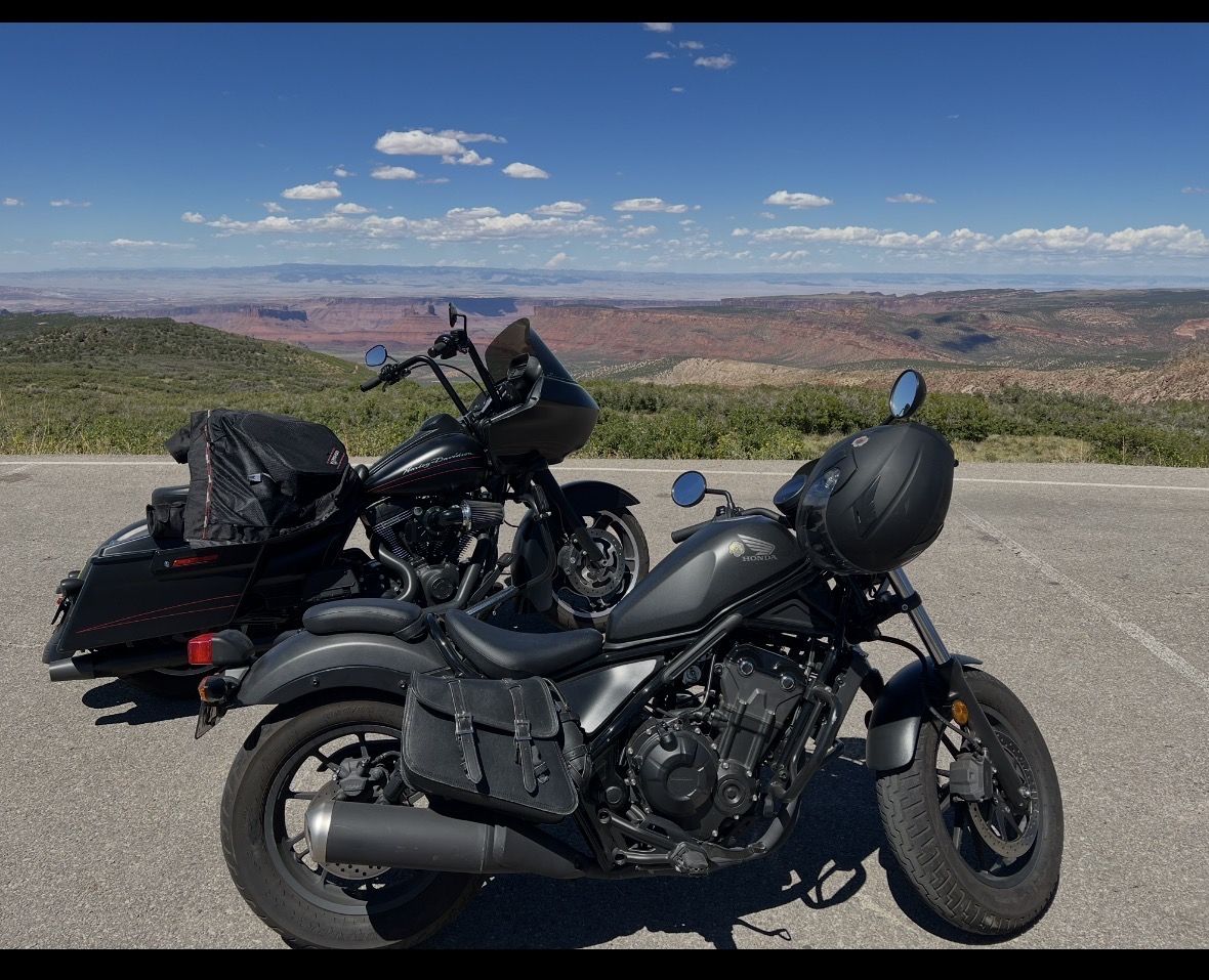 Such an amazing bike. After market tailpipe. 500 cc. Gets so many complements and is in great shape. How’s the back rest attachment. And a side leather saddle bag.