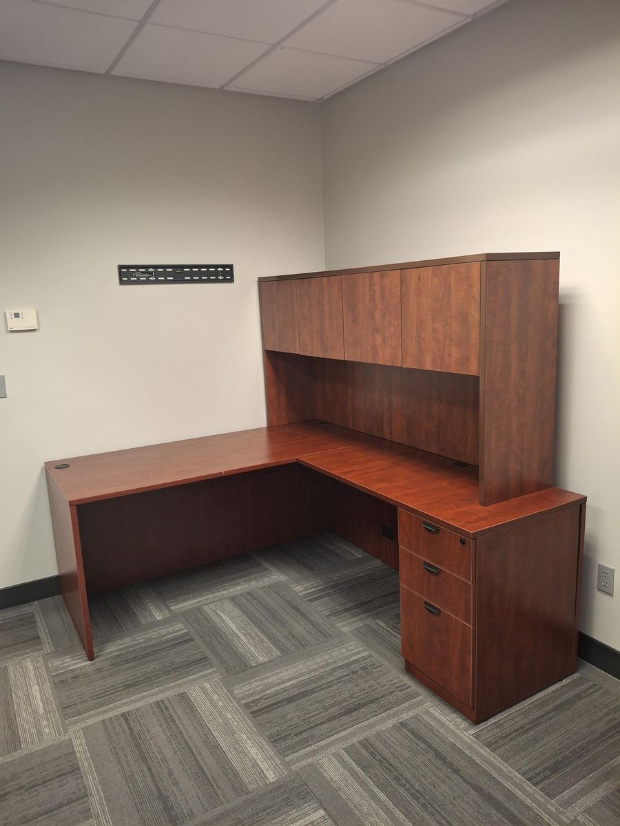 Beautiful wooden office desk with side hutch. Desk is approximately 2.5 feet deep, about 6 feet long on each side. With hutch it stands about 5'5". Must be able to disassemble and take away ASAP. Contact via text message at (650) 248-3120