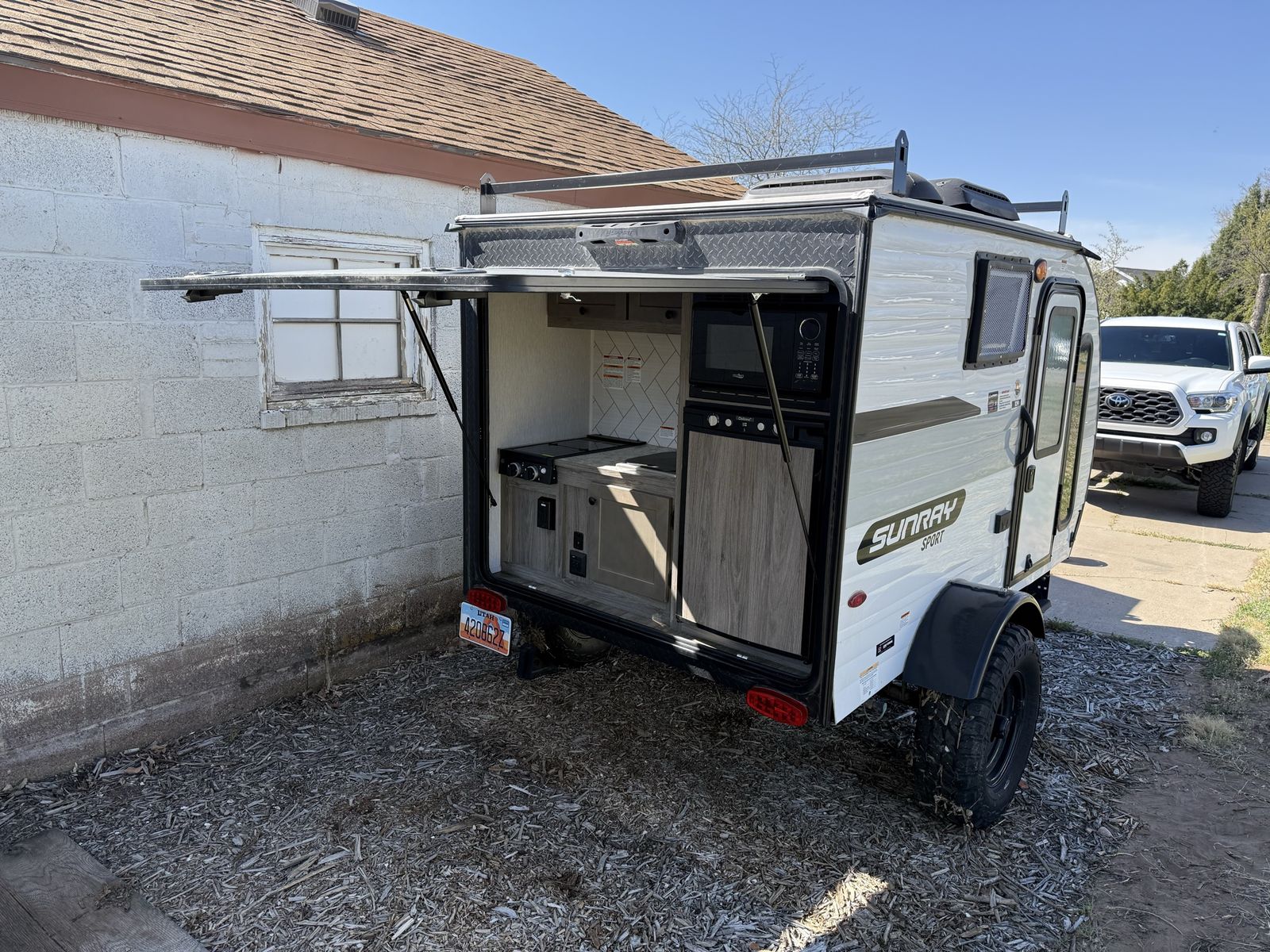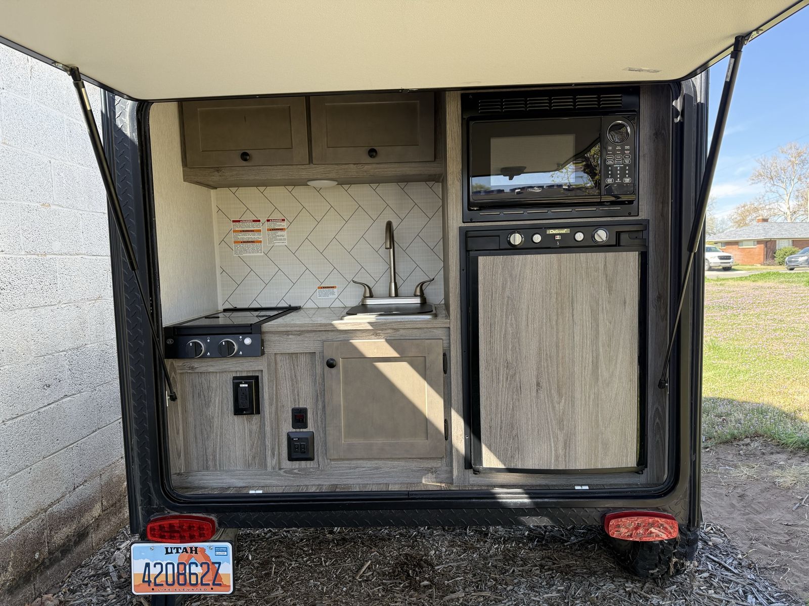 Selling my camping trailer, barely used (2 trips in 2024). It’s got a full kitchen that is outside off the back which includes stove top (propane ran) microwave and fridge and water heater for hot water out of the sink. It’s got A/C and a furnace for those colder nights. Comes equipped with solar already as well. I’m moving out of state so i need it gone.