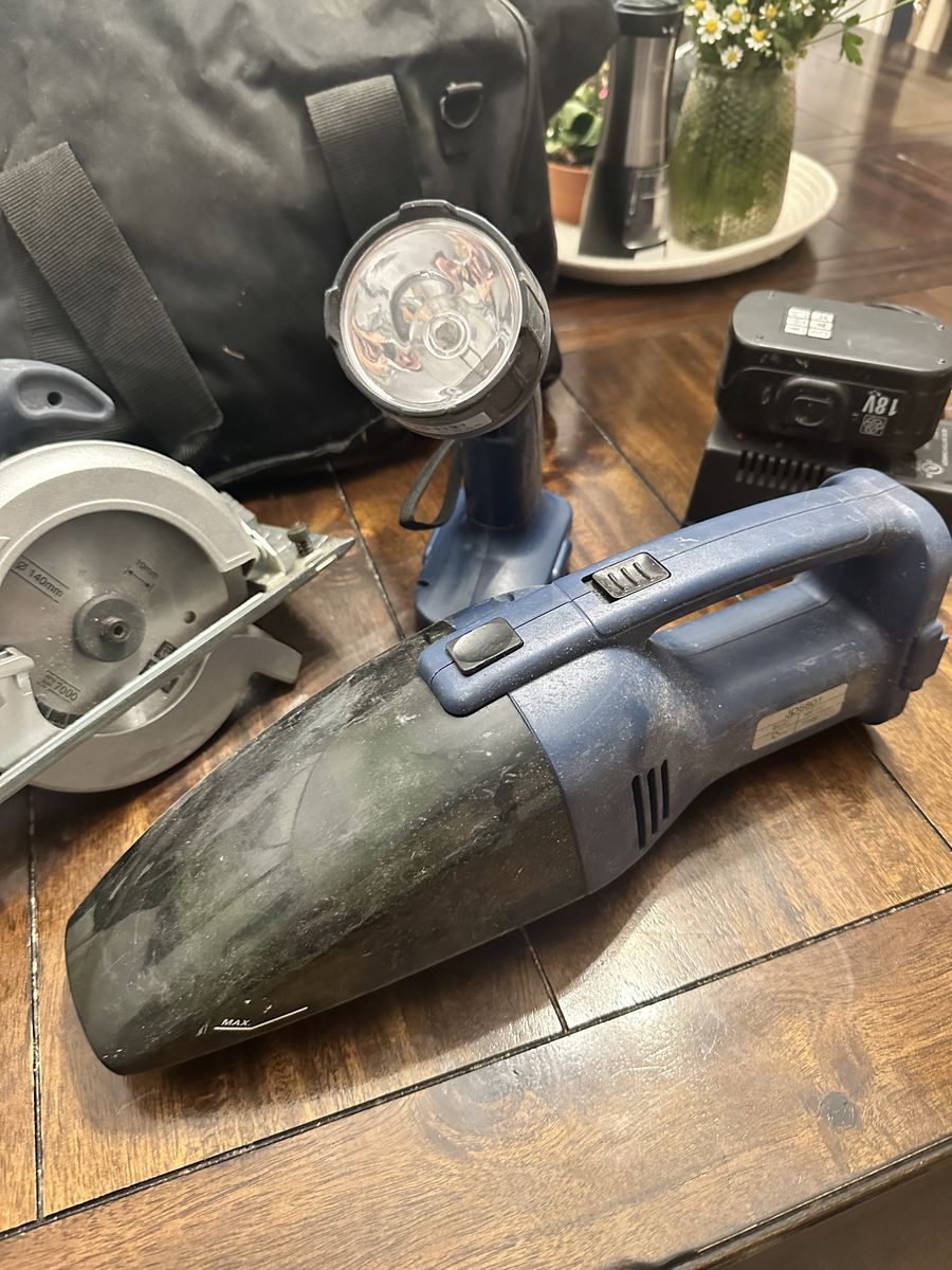 VenmoFlashlight, circular saw and mini vacuum with univeral battery and carrying bag