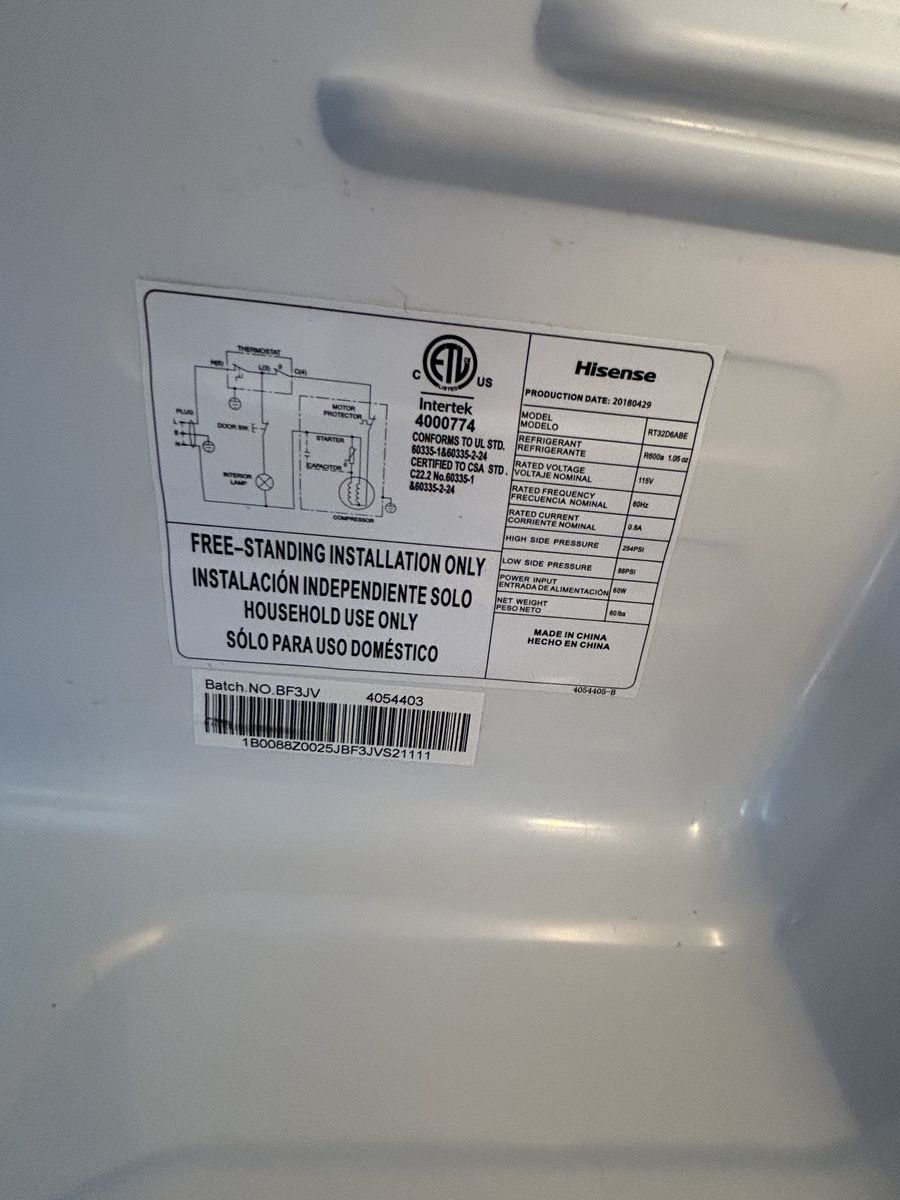 Selling our Hisense Mini Fridge & Freezer It's in good condition besides the front it has some scratches (nothing major). Fridge and freezer get cold and is ready for use! No issues at all. Used it when our main fridge went out and now don't have a need for it.