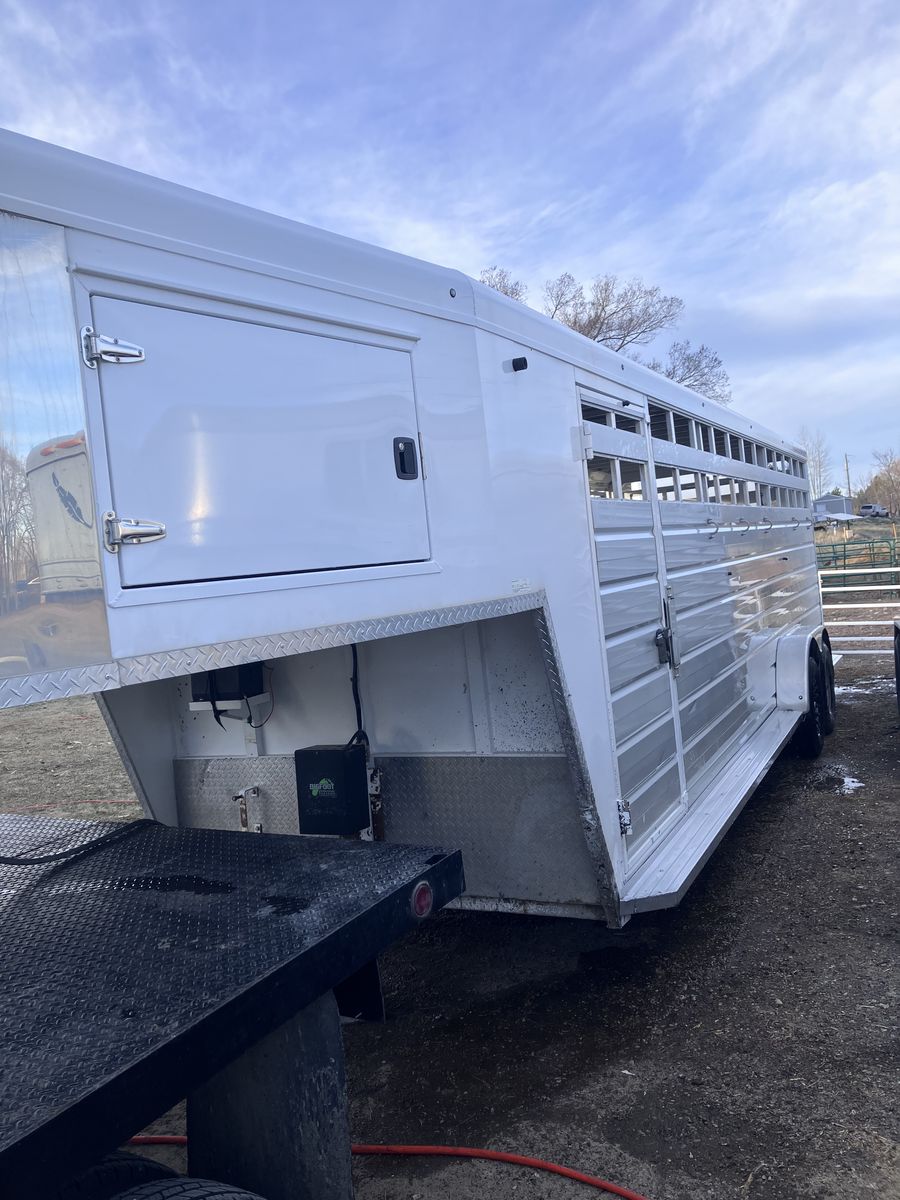 Open to offers 2020 trails West Santa Fe aluminum stock trailer. 24ft by 7ft Goes up for auction April 6th at big mountain auctions in Rupert (online bidding), you might get a good deal there or make an offer.