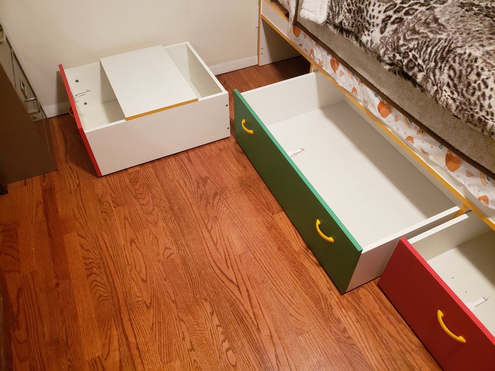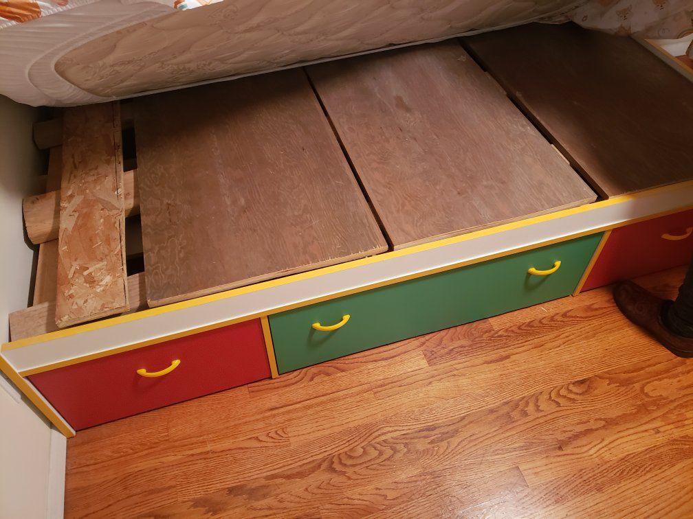 Moving. Must go: Childs Bed Frame w/ 3 drawers. Perfect condition. Each drawer is wheeled. Bedframe and drawers only (no mattress). Located in Taylorsville. Asking $75 obo. Cash only. no scammy stuff. I prefer phone - call me Dennis 385 240 7203