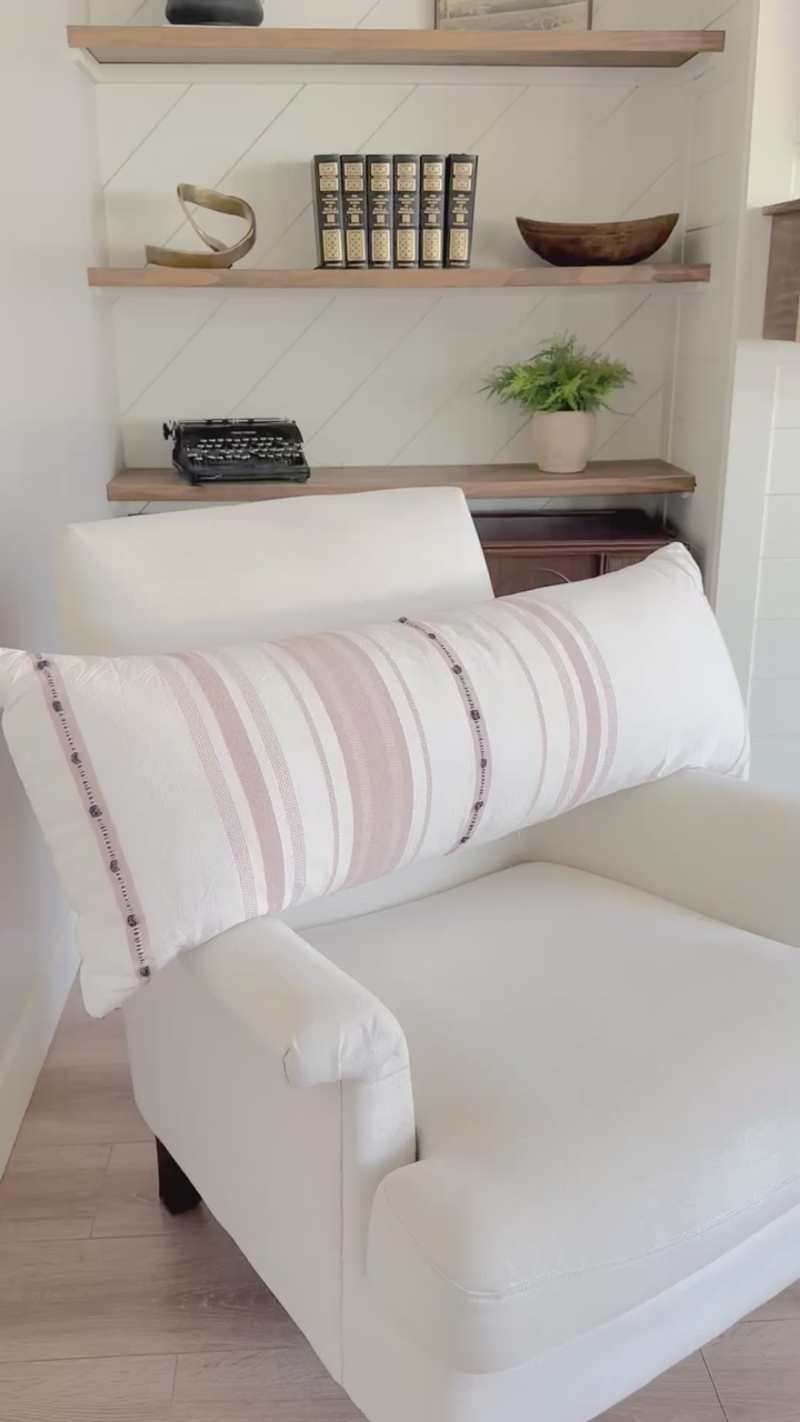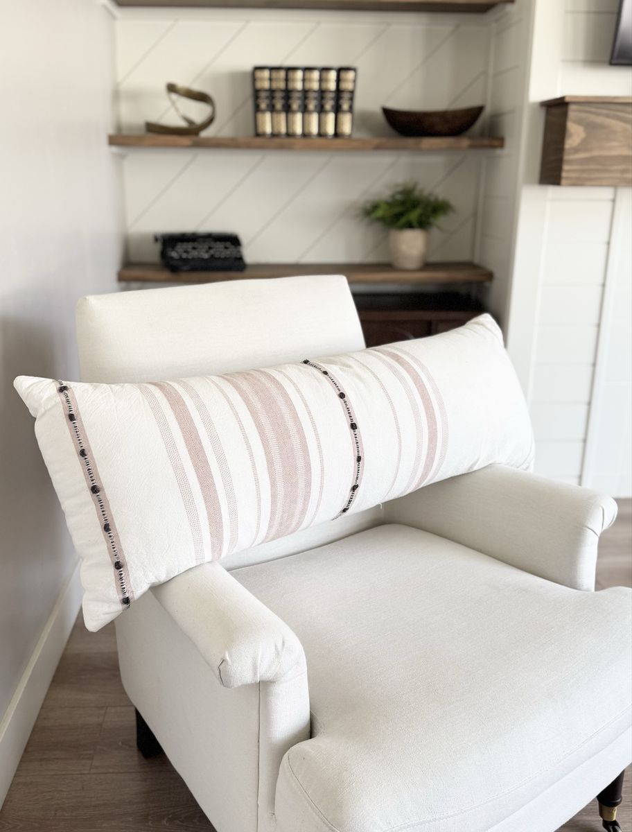 Long | Throw Pillow | Accent Pillow | Pink | Ivory | Dark Grey | Lumbar | Coastal | Beach | Bedroom | Kids | Guest Room | Girls Room | Boys Room | Guest Room | Craft Room | Bed | Chair | Sofa | Modern | Traditional | House | Home Furnishings | Home Decor | Hand Crafted | Character | Charm | Charming | Country | Cottage | Farmhouse | Style | White | Staging