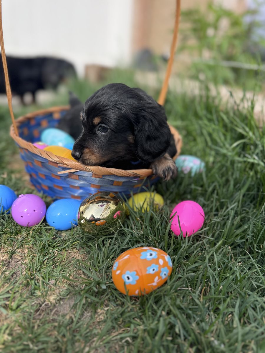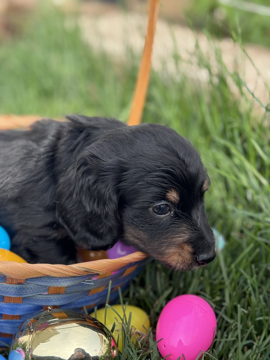 ApplePayAdorable male dachshund puppies looking for their forever homes. These pups come from beautiful long haired parents and have great temperaments.