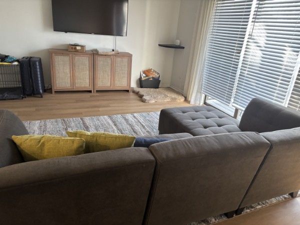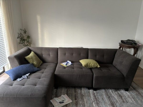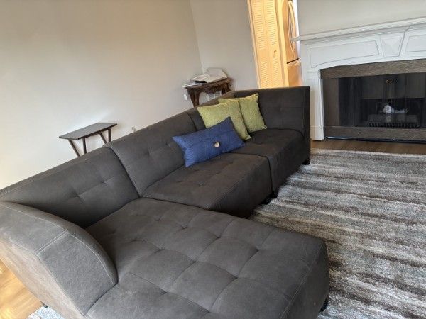 Venmo2 year old sectional couch in great condition. Single lady owned and barely used. Please let me know when you can Venmo and pick up in Millcreek. Chaise side is 64 in wide and the long part of the sectional is 8ft 8 in. From wall to front its 36 in in depth.