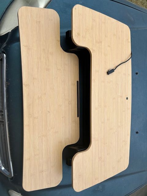 Venmo$35 OBO. This is a Flexispot height adjustable desk converter. They can act like a regular desk, or with a simple squeeze of the trigger convert in to a nice standing desk. It is 34.5" wide. The big sides of the top are 16" and the center piece is 12". The bottom is 8" on the sides and 12" in the middle. It also comes with a power center. It is in near perfect condition. Let me know if you have any further questions. Text preferred. Also, take a look at the other items I have for sale.