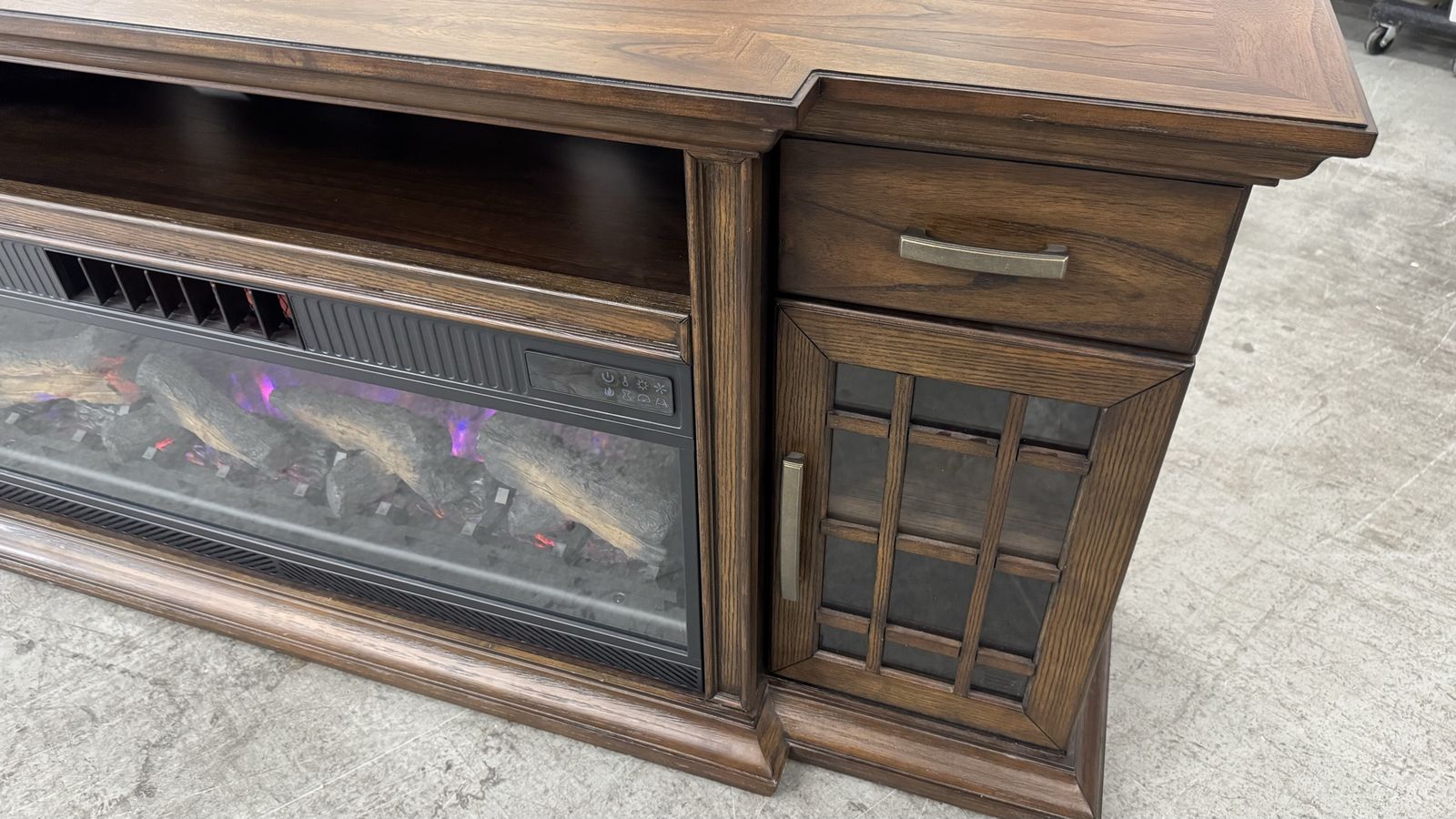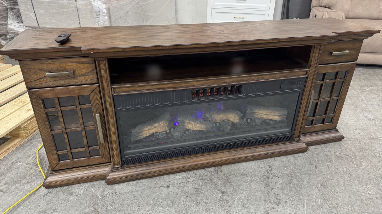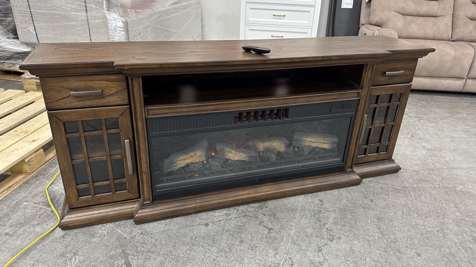GooglePayTresanti Everett TV Console with ClassicFlame CoolGlow 2-in-1 Electric Fireplace and Fan, Brown Fireplace Price was $799 Like new open box Light scratches