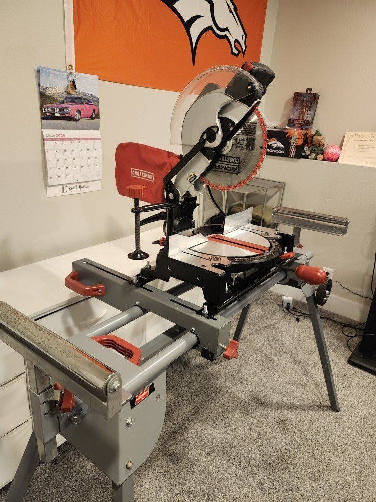 VenmoThis is a 10" Crafstman laser trac single bevel miter saw! It is closer to new. The laser works great! It has vice to hold material down. It can cut 6" wide material. The stand works great and has all of its parts. The stand has wheels to roll the saw around!