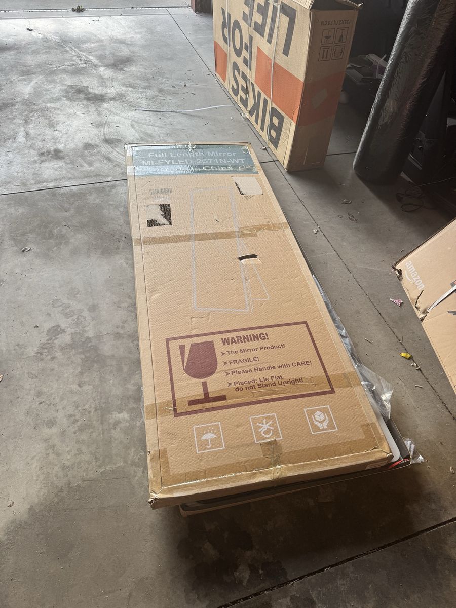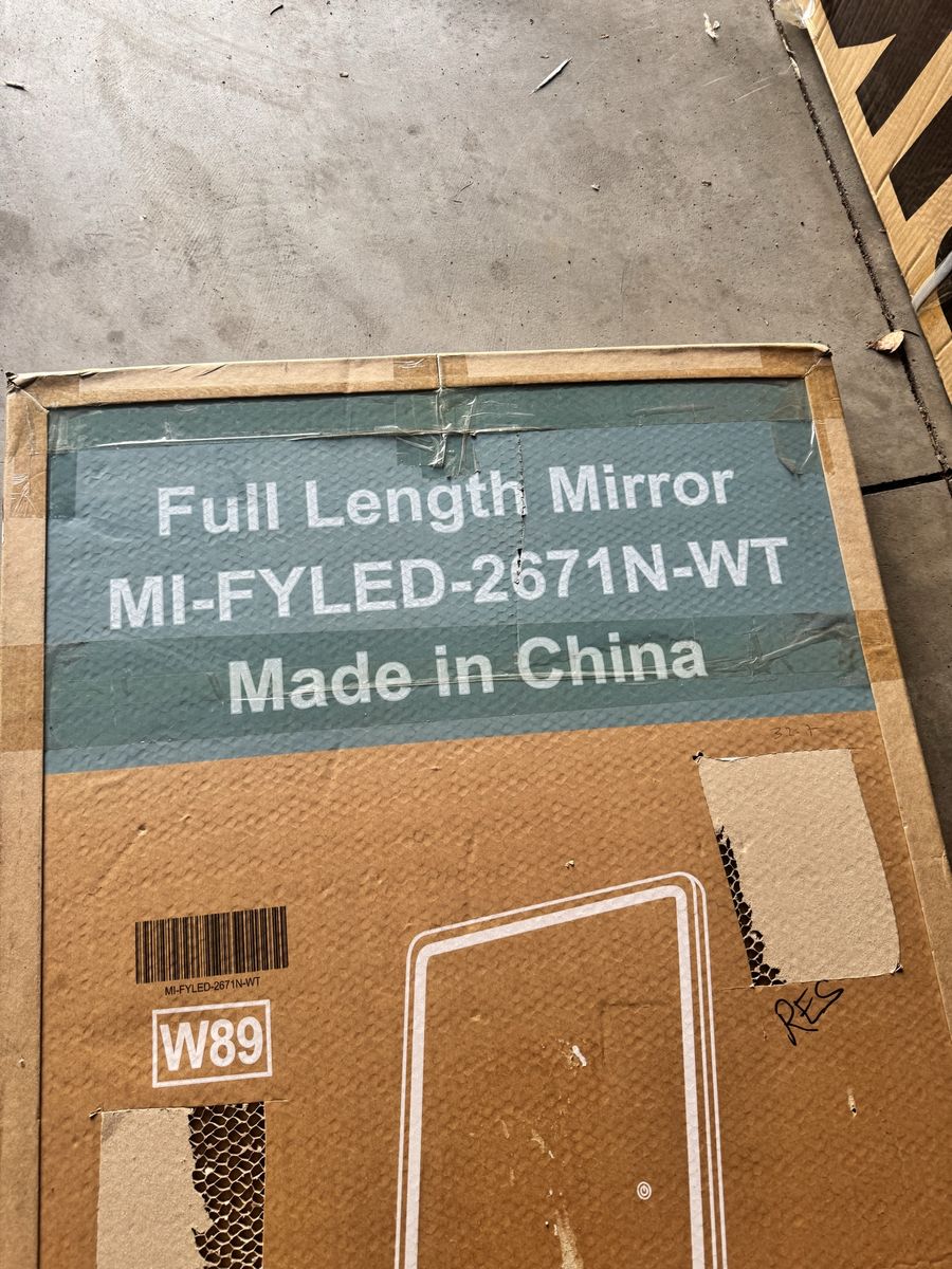 VenmoBrand new standing LED Mirror. It works great, it’s 25 1/2 inches wide 70 inches tall. LED light works and it has a leg to make it stand alone.