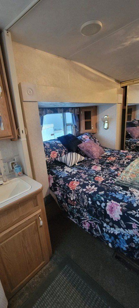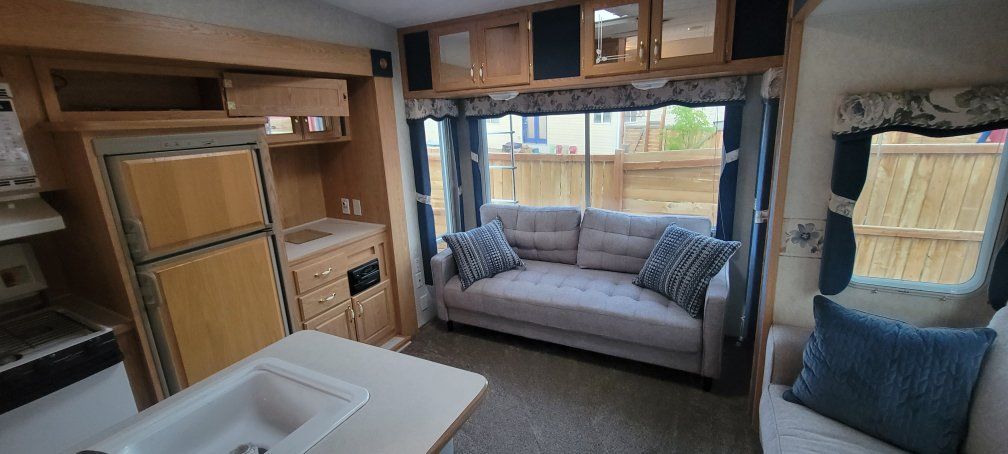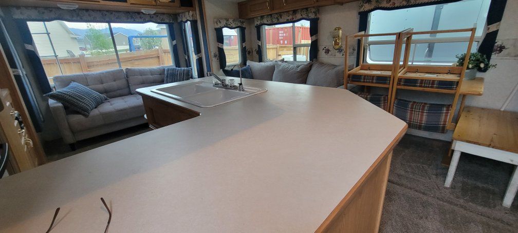 VenmoThis is a solid trailer you can live in all year round. 3 popouts. newer tires. Has storm windows sealed under carriage 33 feet long 9600 dry weight. Has new carpet new couches everything's upgraded there's no leaks. Air conditioner works great. furnace works great. 2ea 5 gallon propanes two new batteries 2 solar panels on the roof with controller, keeps the batteries charged. everything works as it should.
