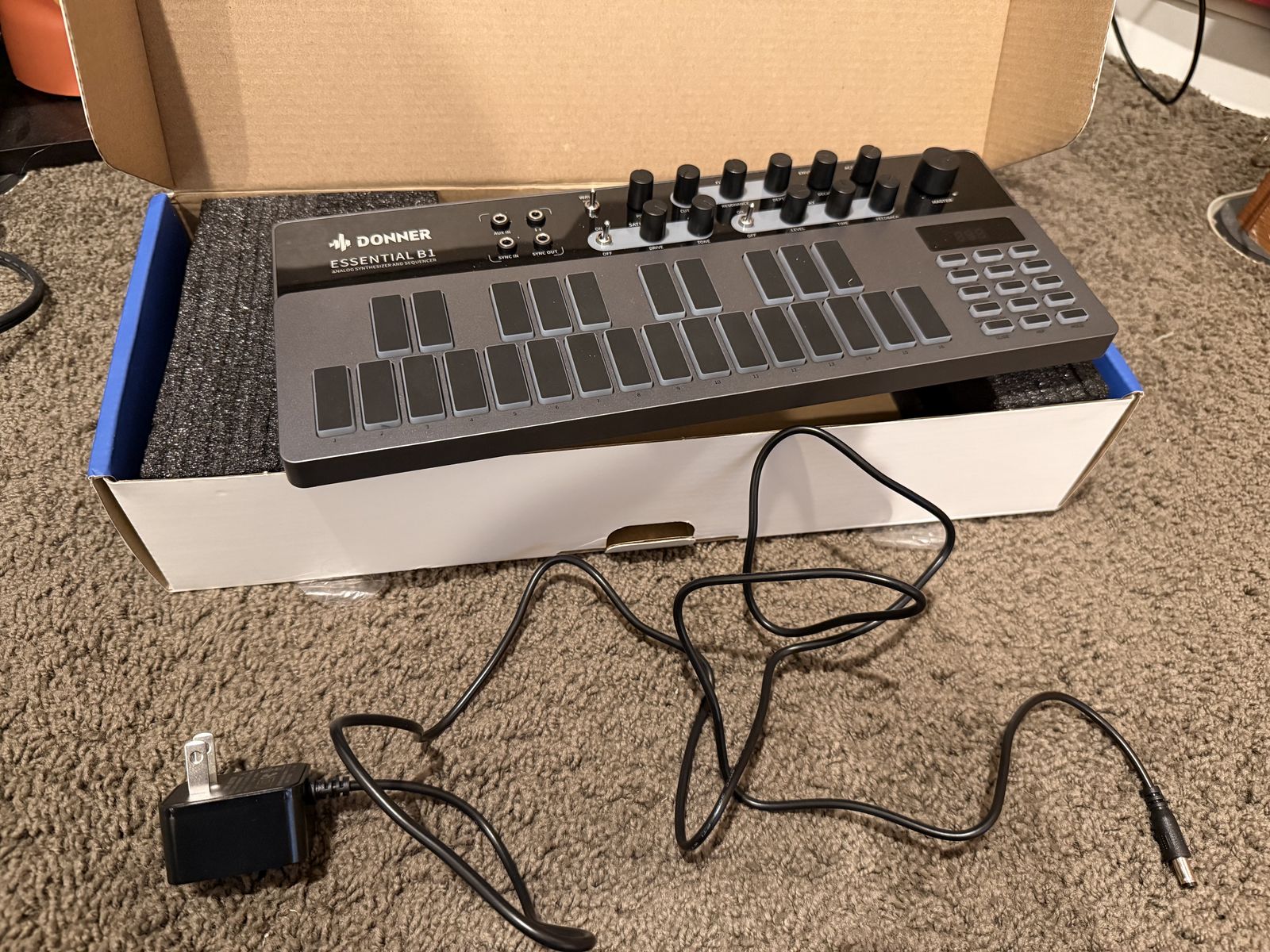 Excellent condition, clones the acidic sound of the Roland 303 very well. Easy to use. Includes power cord and box, and I just now found the manual for it, too. Instructions are easily researchable (which is how I learned how to play it) Great sound, great value! This synthesizer can be yours today!