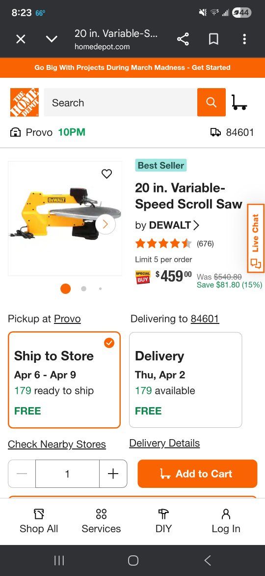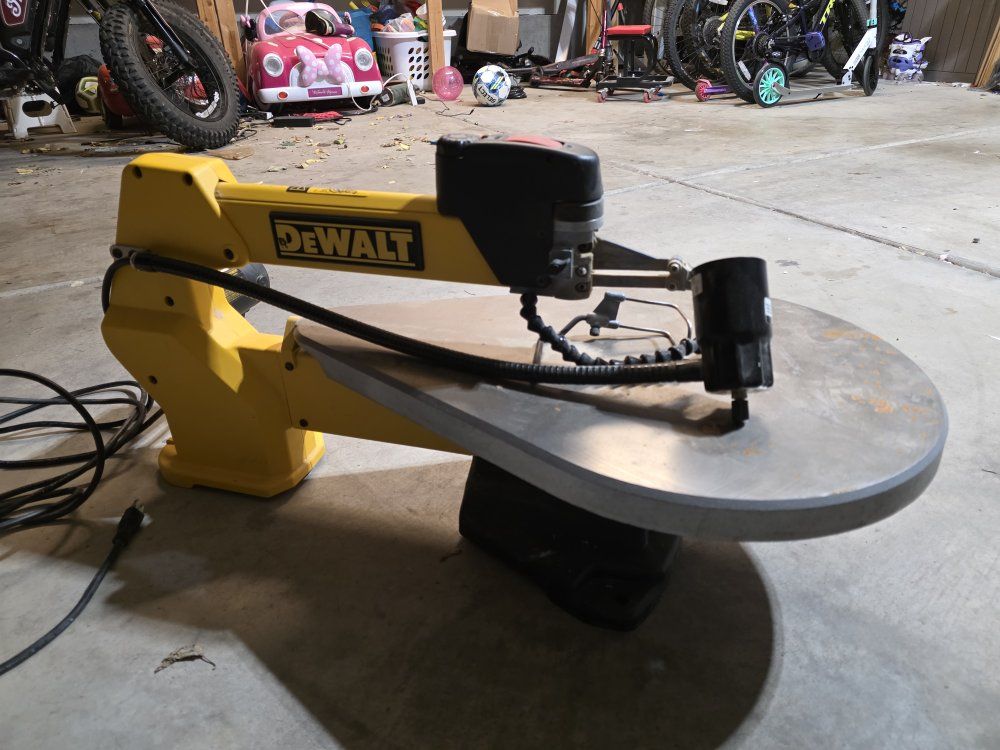 ZelleWe used to have a woodshop and used to cut out a lot of wood crafts. We don't anymore so are getting rid of this saw. It was factory rebuilt by Dewalt and never used again. It was the backup saw that never got used.
