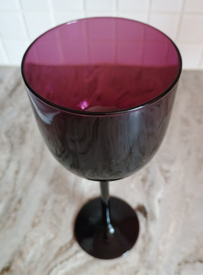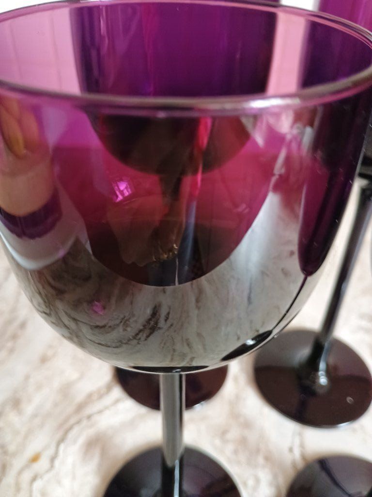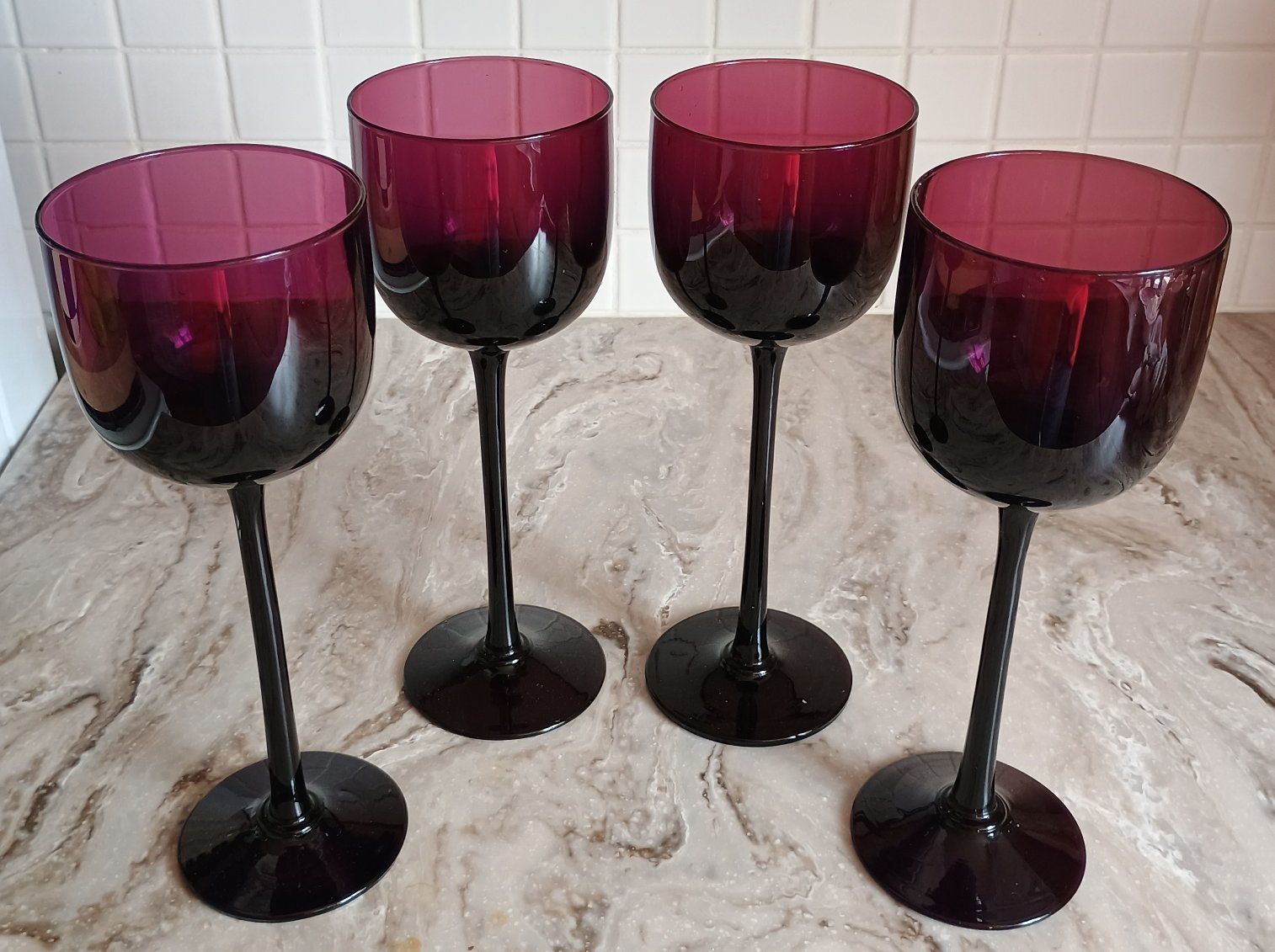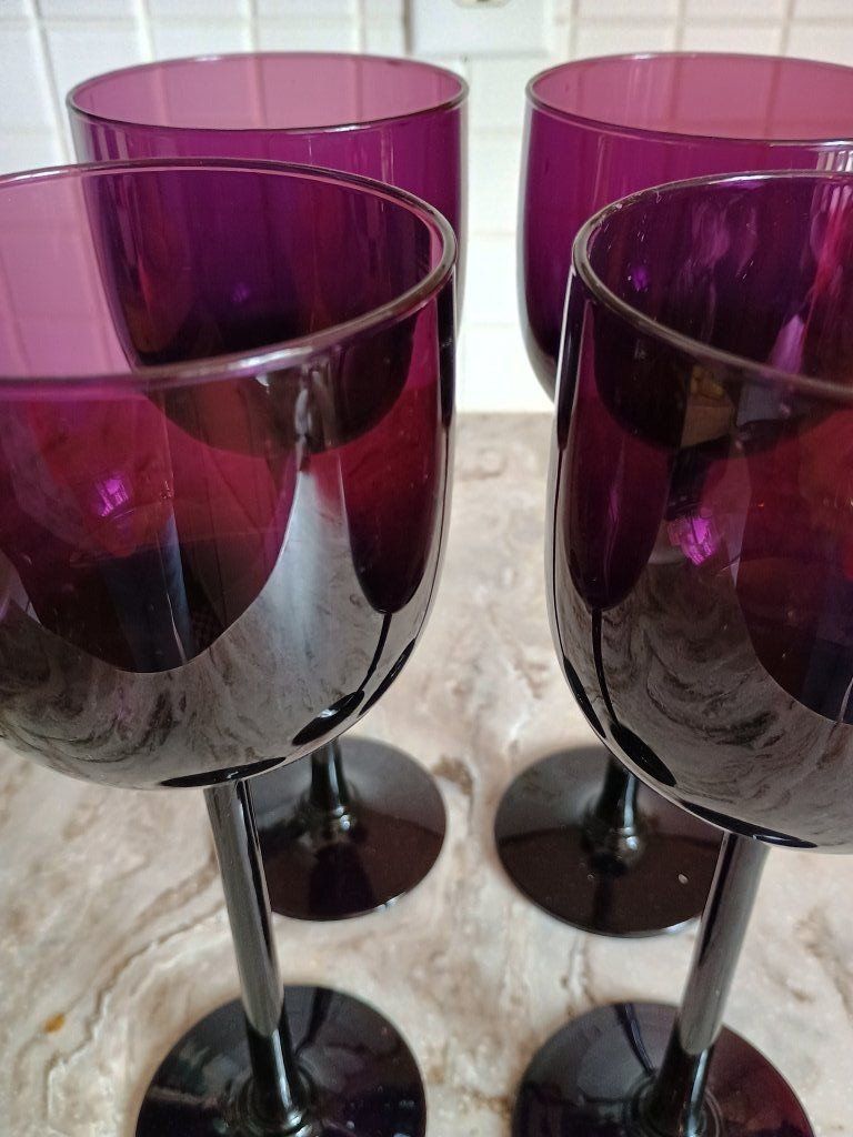 VenmoSet of four Carlo Moretti Goblets. Beautiful Plum color. Goblets measure 9.25" tall and 3.25" across the top. No chips or cracks or wear. Smoke and pet free home