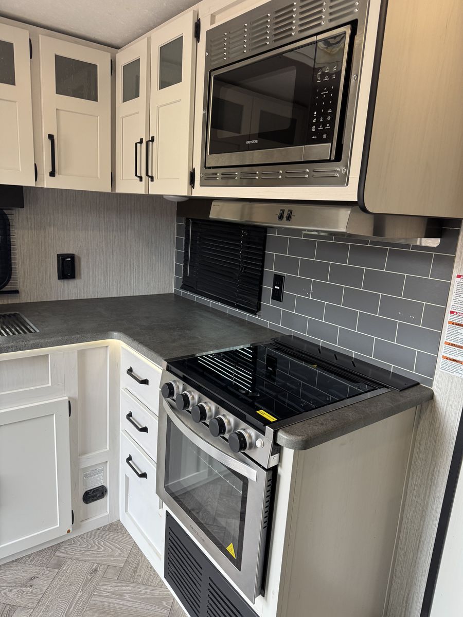 • Microwave, oven, and 3-burner stove