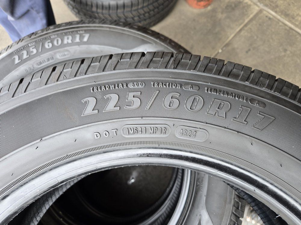 USED SET OF TIRES!! The brand is GOODYEAR RELIANT ALL SEASON. Size is 225/60R17 Free mount, balance, and brand new valve stems. Like new 90% tread left $340 for all 4 DOT 2024 $5 disposal fee per every old tire you leave for us to dispose of Also check out our GOOGLE reviews to assure you’re in good hands, just search (Oliver Tires) We also offer lots of other sizes new and used. Call or text for availability Espańol; 8016885139 Office: 8016620227 Or come visit us at 3010 west 500 south Salt Lake City Utah
