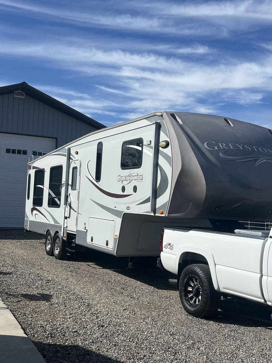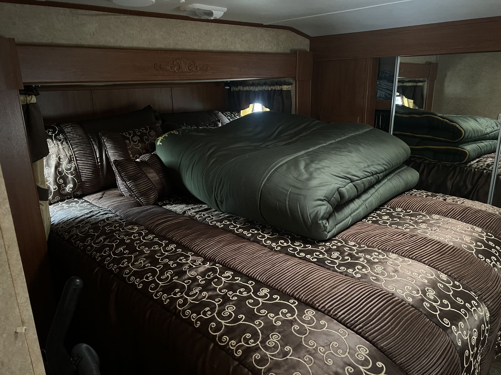 The tarp for the awning needs to be replaced. You can get one on Amazon. BW 5 th wheel hitch included. Rebuilt/Restored Title due to a tree branch when it was brand new. We have a cabin and rarely use it. The bearings and brakes were replaced last fall.