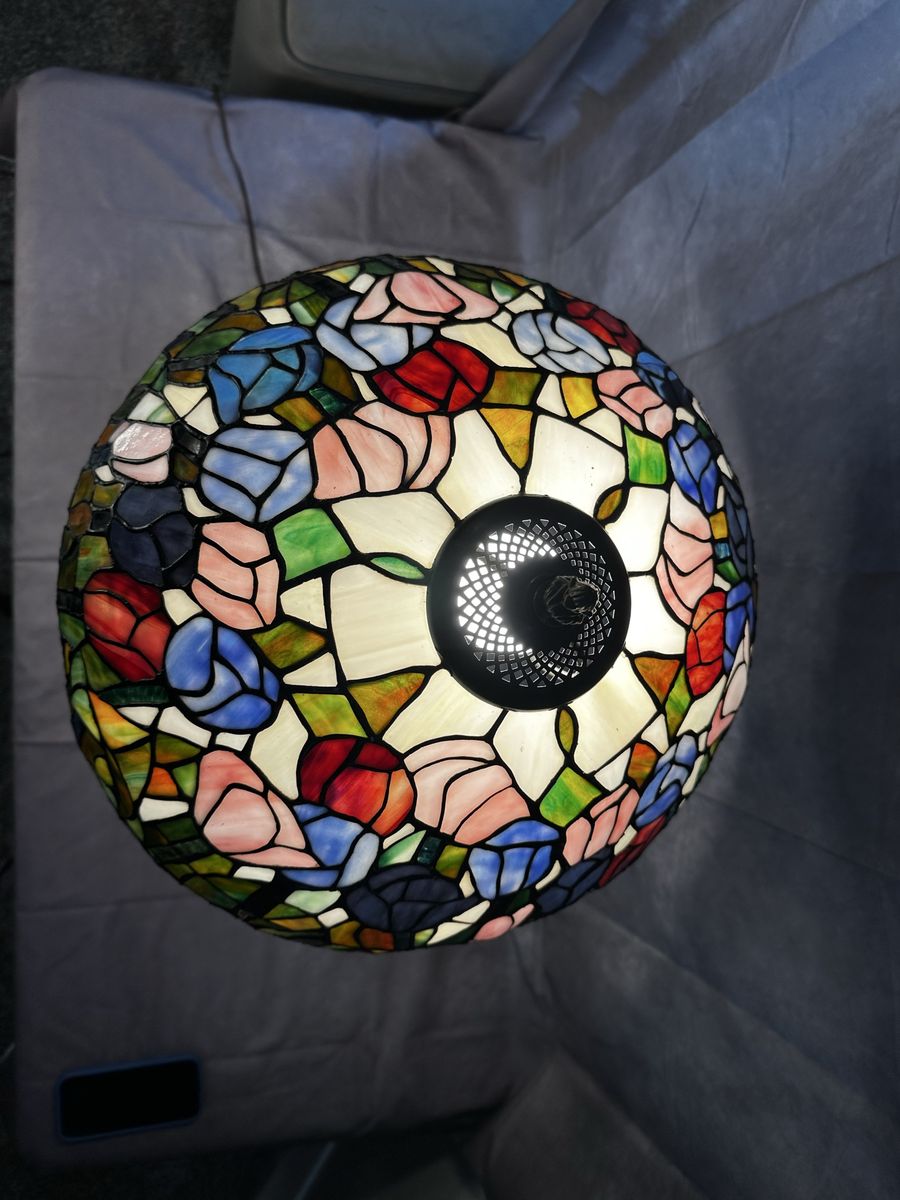 • Large stained glass shade (~16”) • Decorative vintage style base • Fully functional • Great statement lamp for living room or bedroom