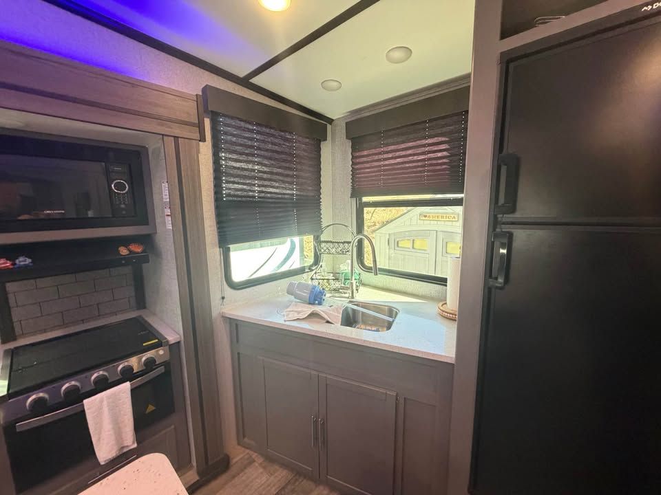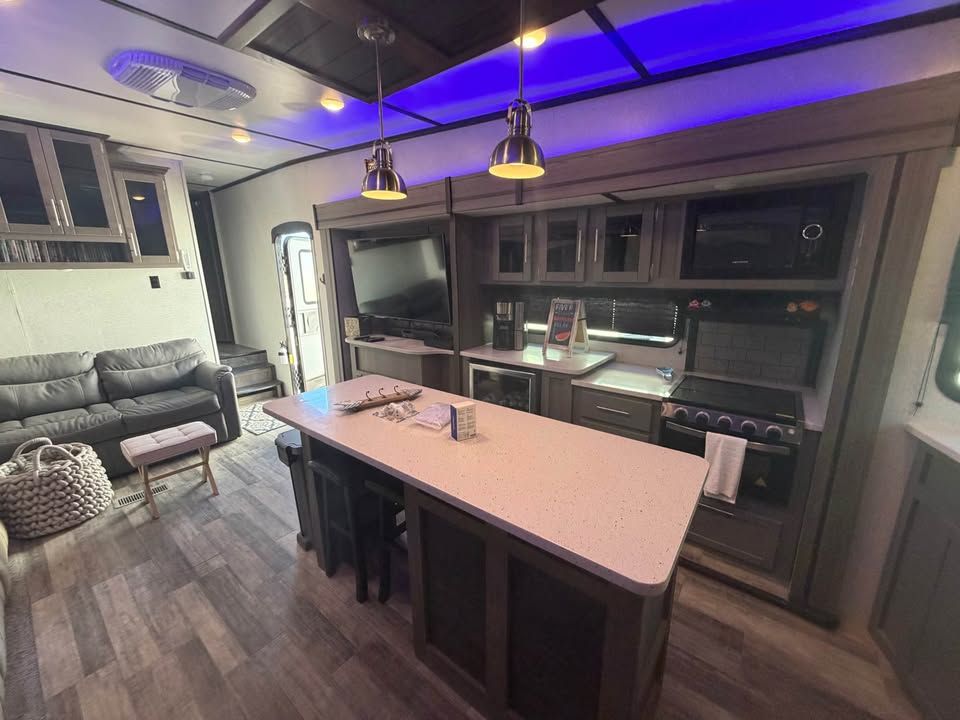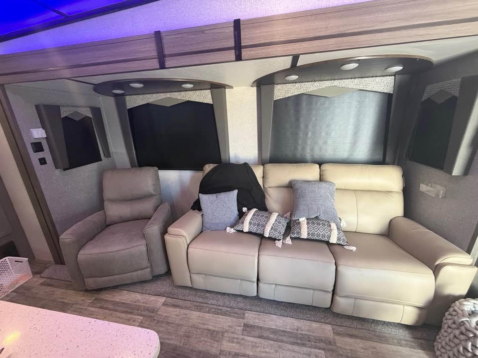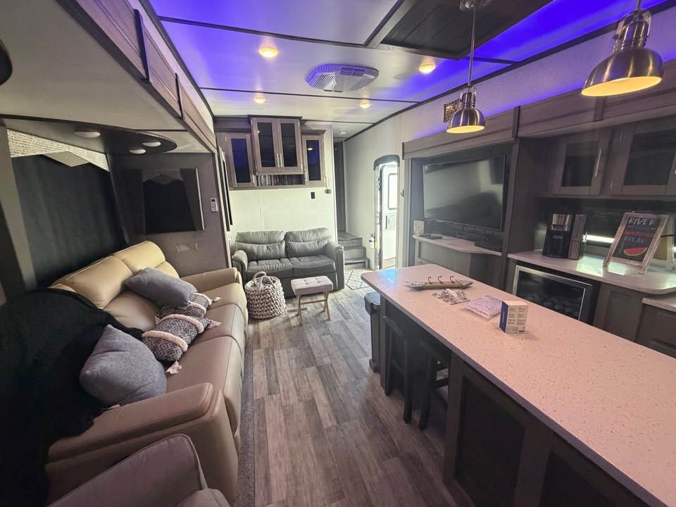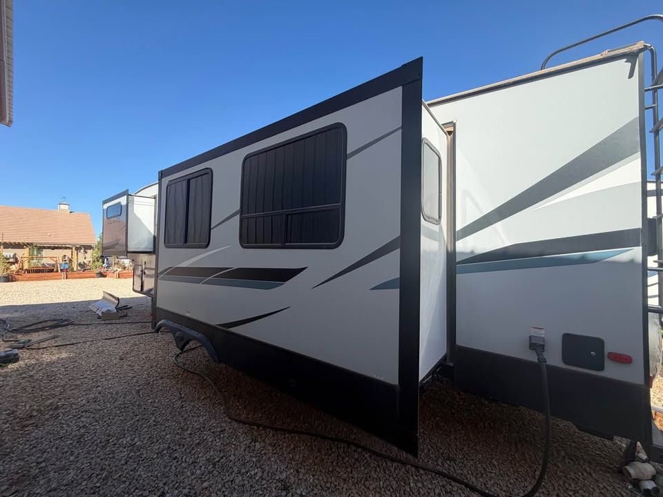 Fully loaded! Used 2 times since BRAND NEW! Looks and smells SHOWROOM BRAND NEW! 2 huge AC’s Best layout available with rear kitchen Length: 35' 11" 50amp service 4 deep cycle batteries Tinted windows Black out shades Center island bar Under glow ice blue lighting NOTE: will come with dinette 2 interior refrigerators One outdoor fridge Fireplace Huge TV HUGE counter space Weight: ~9,234 lbs (dry), 11,780 lbs (GVWR). Baths: huge bathroom with glass residental sized shower Construction: Aluminum rims, fiberglass front cap, and a heated/enclosed underbelly. Amenities: Electric fireplace, 10.2 cu. ft. 3 refrigerators Power awning with LED lights. Sold fold down steps Fresh Water Capacity (gal-51 Gray Water Capacity (gal-39 Black Water Capacity (gal-78 Water Heater Tank (gal-6 Huge pass through basements Hurricane Utah Clean clear title in my hand! $41,000 maybe a trade?